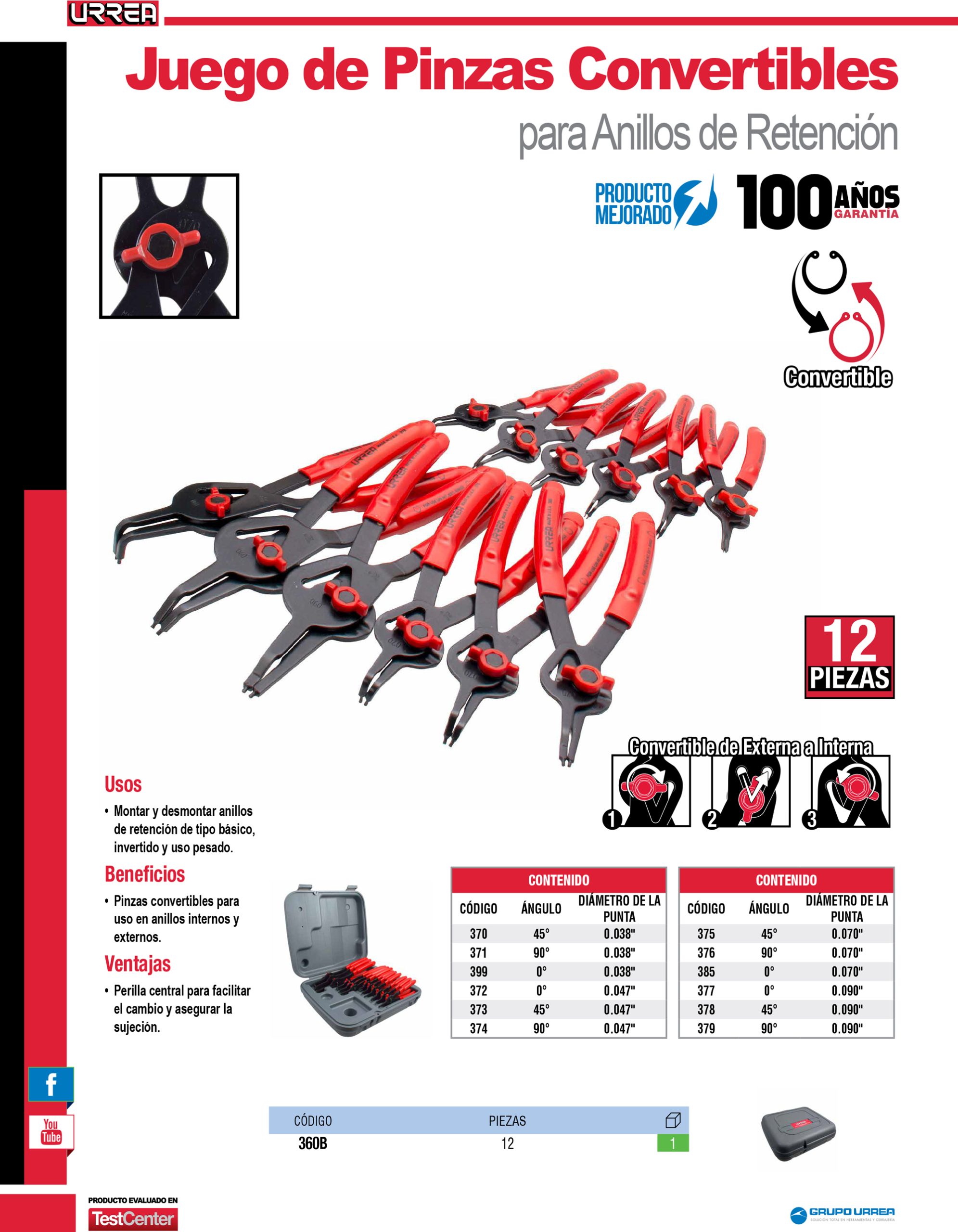 Juego de pinzas para anillos de retención convertibles con mariposa, 12 piezas Urrea