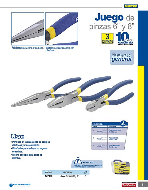 Juego de pinzas para electricista con mango con doble plastisol, 3 piezas Foy