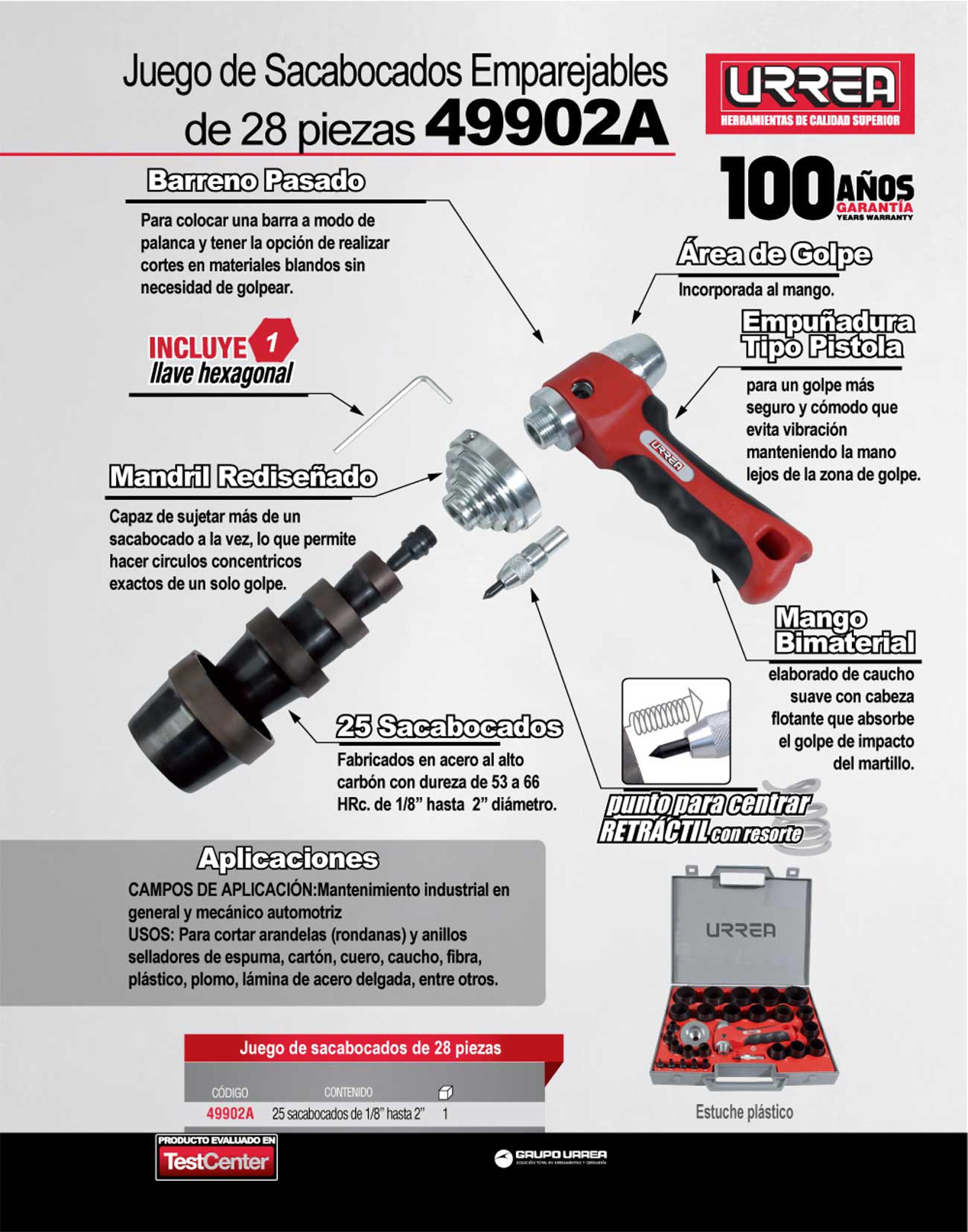 Juego de sacabocados 28 piezas en pulgadas ergonómico Urrea