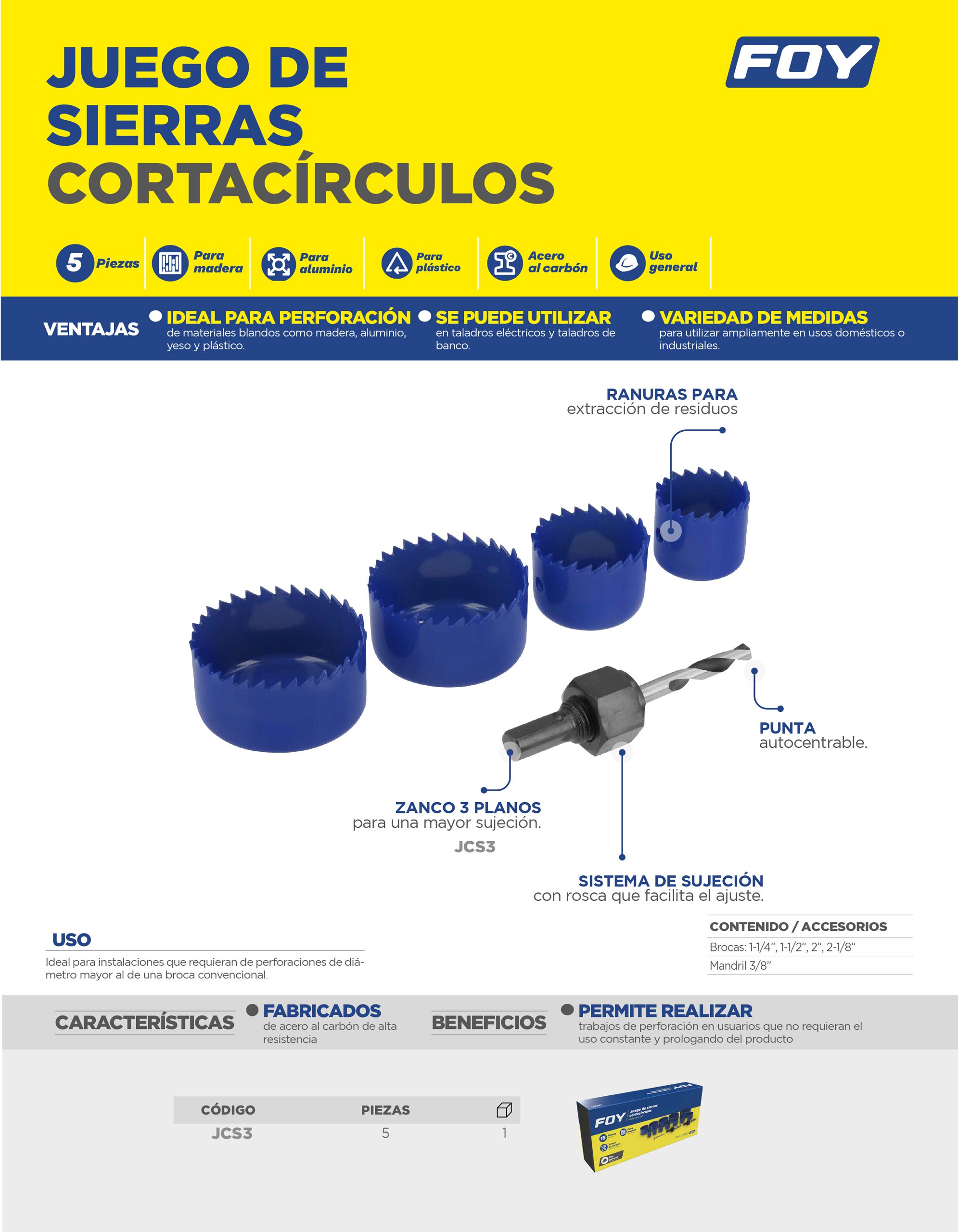 Juego de sierras cortaciruclos, 5 piezas Foy