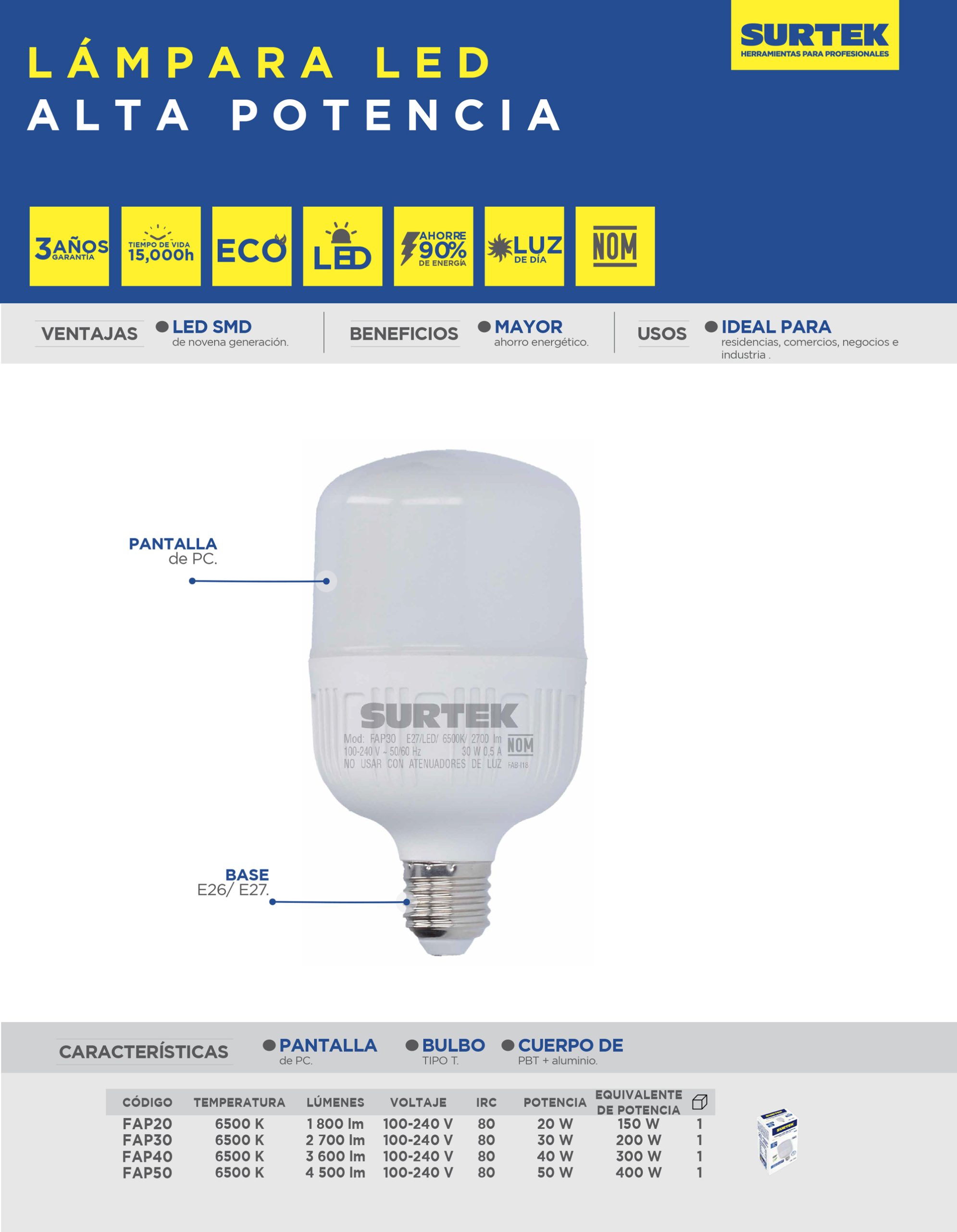 Lámpara de LED alta potencia, 40 W Surtek