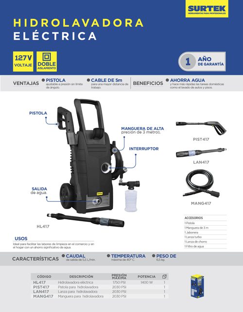 Lanza para hidrolavadora eléctrica HL417 Surtek