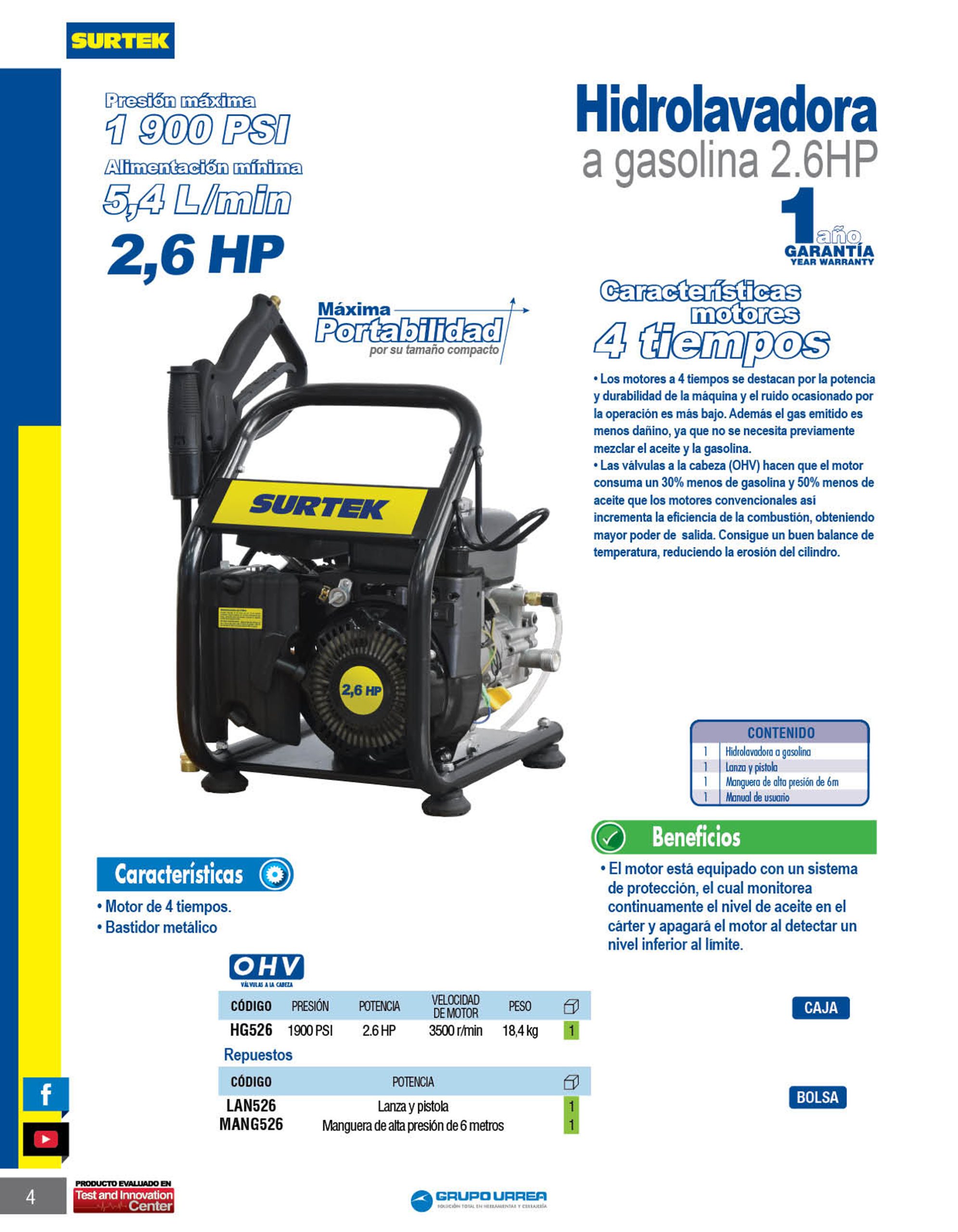 Lanza y pistola para hidrolavadora a gasolina HG526 Surtek