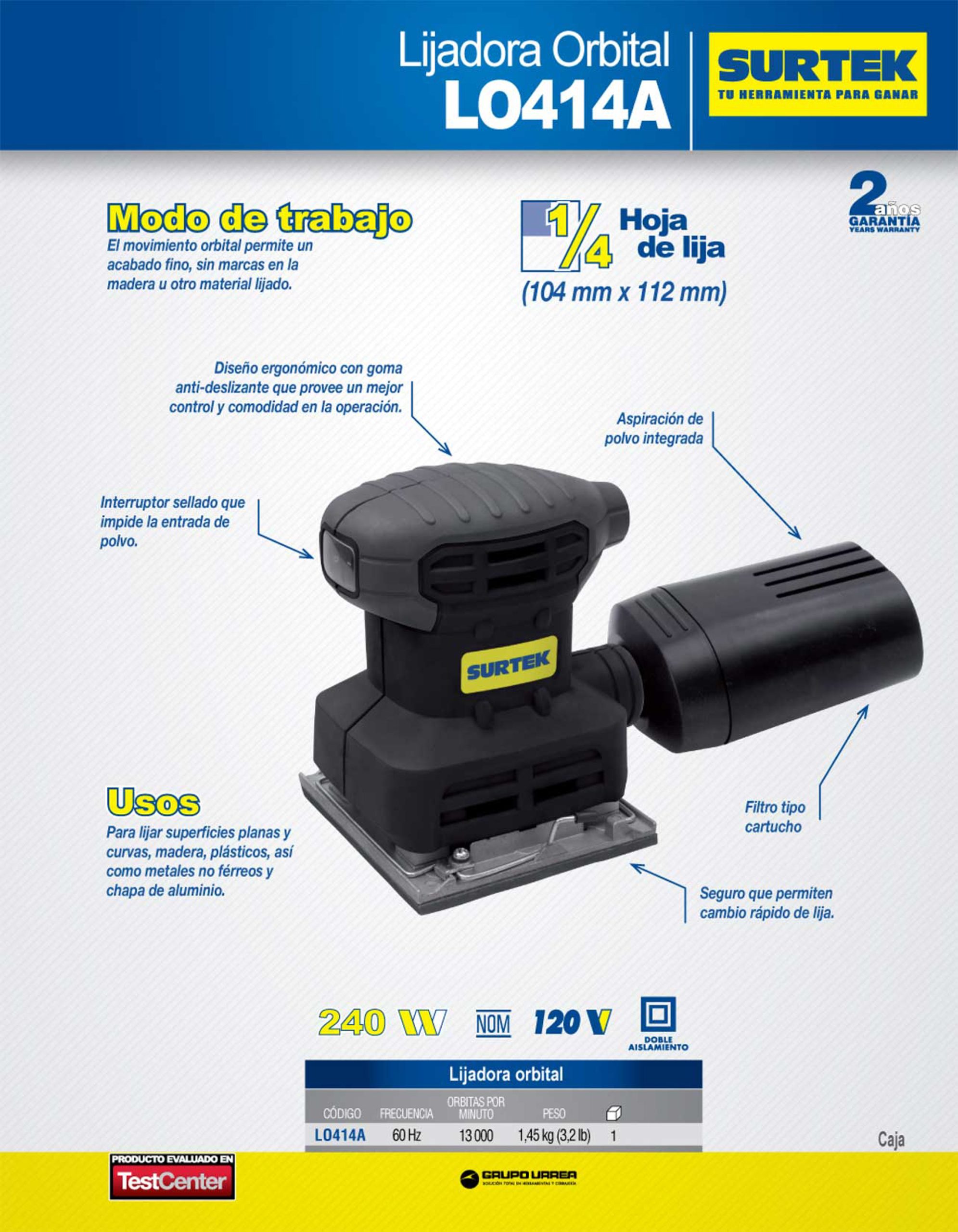 Lijadora orbital 1/4″ 240 W 120 V, 13000 RPM Surtek