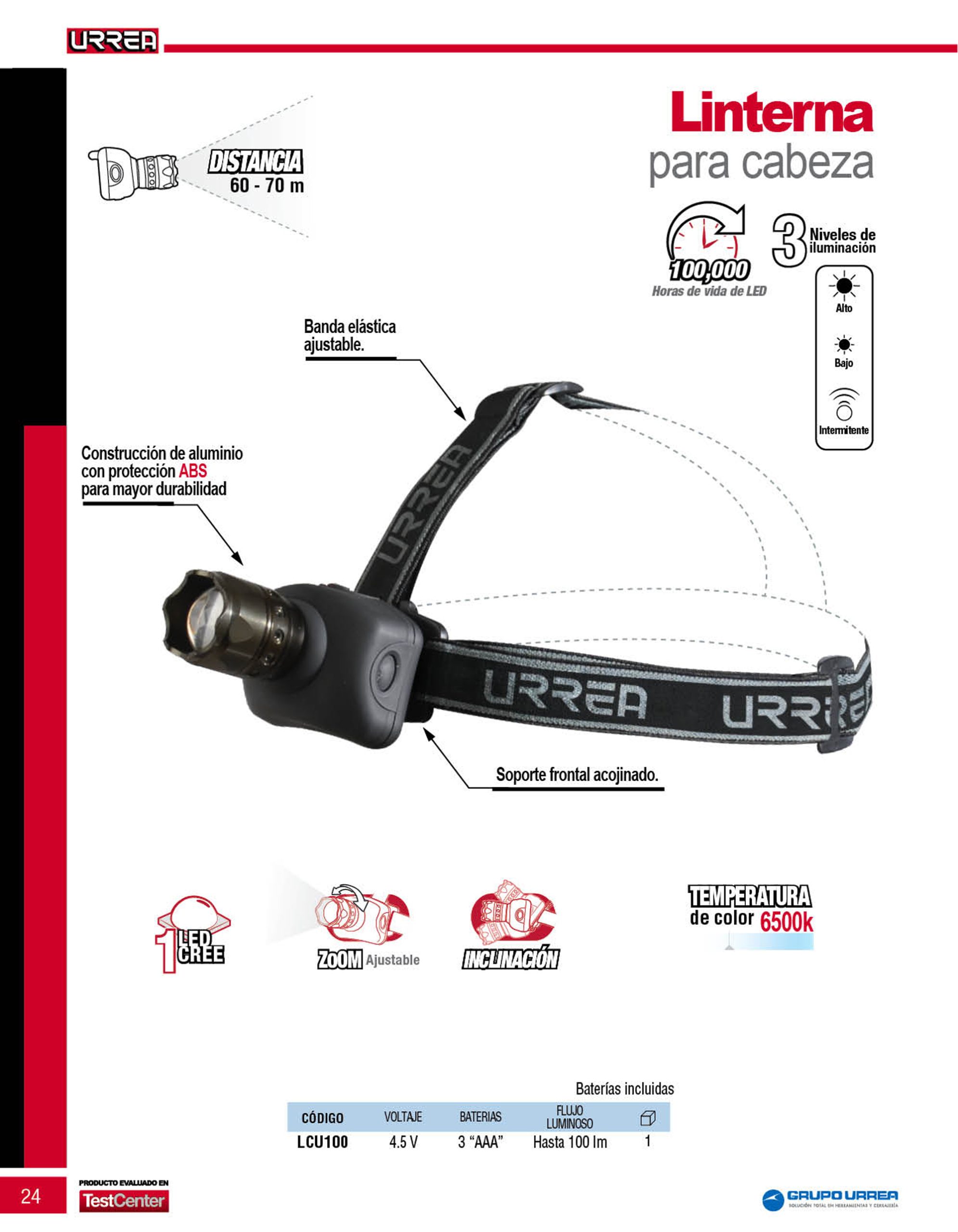Linterna de LED para cabeza a baterías 3 pilas “AAA” de 100 lm Urrea