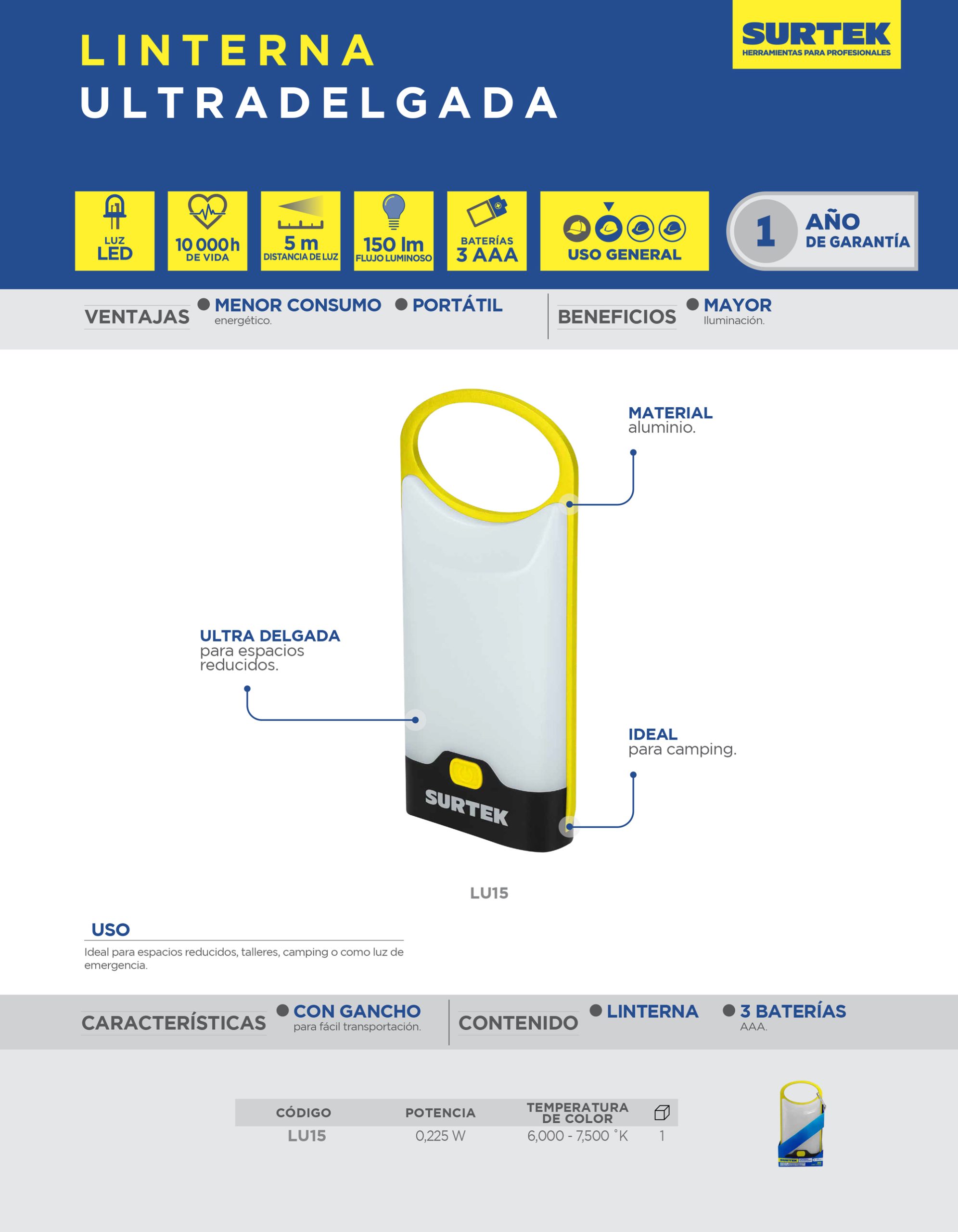 Linterna ultradelgada a baterías 3 “AAA” de 150 lm Surtek