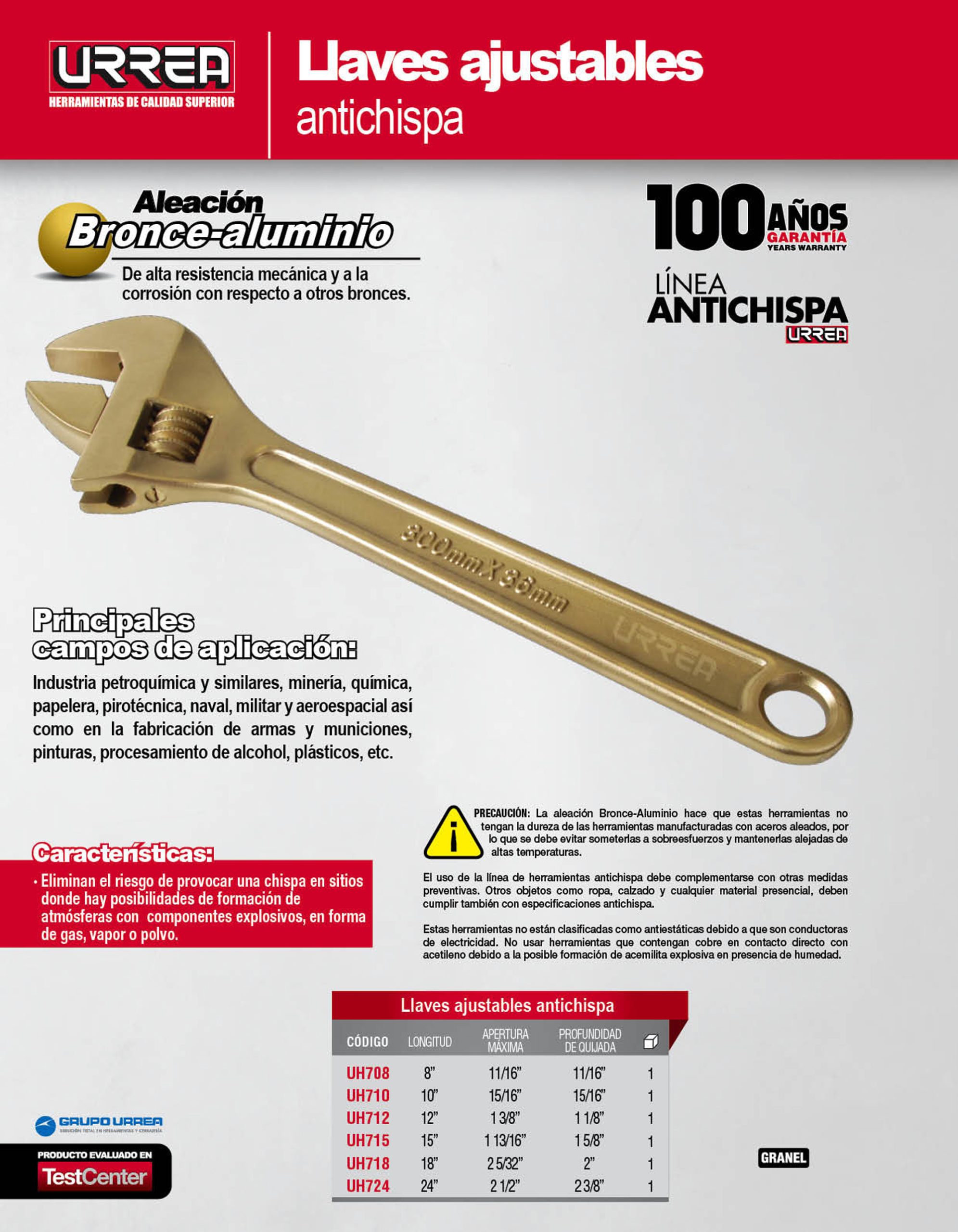 Llave ajustable de bronce-aluminio antichispa de 8″ Urrea