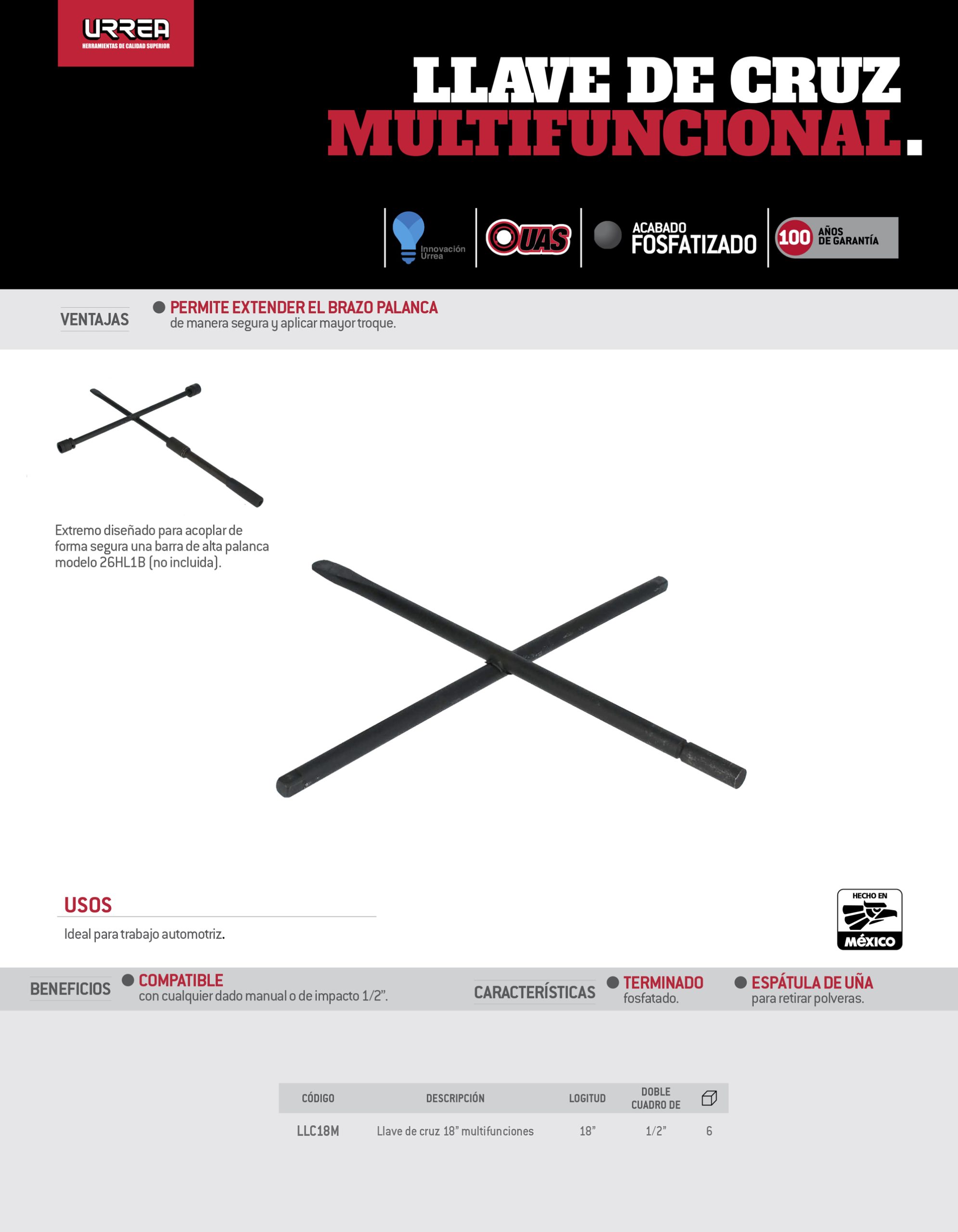 Llave de cruz fosfatizada multifuncional 18″ Urrea