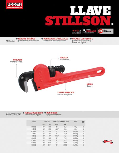 Llave stillson de hierro maleable de 60″ Urrea