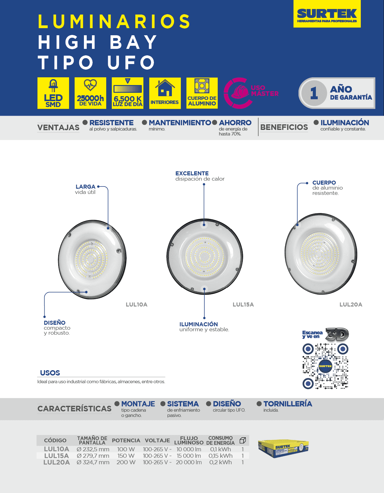 Luminario LED High Bay para bodega, 200 W, luz fría Surtek
