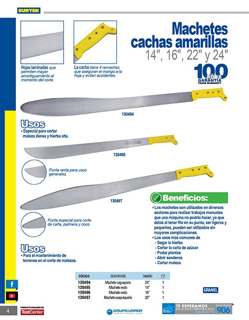 Machete laminado con mango amarillo acapulqueño 22″ Surtek