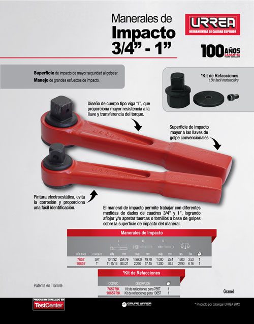 Maneral para dado de impacto cuadro de 1″, 11-15/16″ Urrea