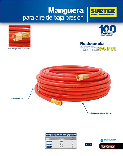 Manguera para aire de baja presión 1/4″ x 5 m Surtek