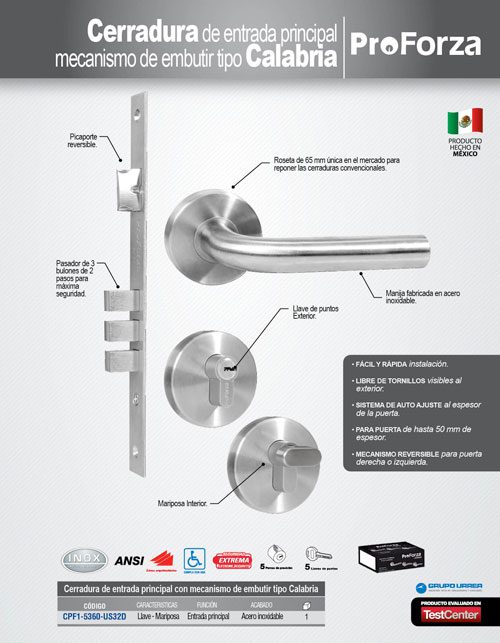 Manija Calabria para entrada función sencilla, mecanismo embutir, en caja Proforza
