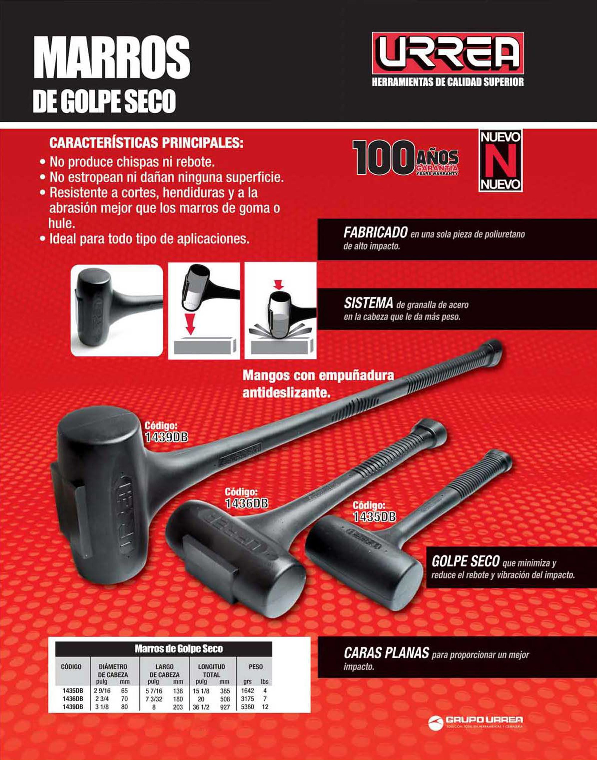 -Ideal para todo tipo de aplicaciones. El funcionamiento consiste en el movimiento de la granalla de acero que llena parcialmente la cabeza, cuando la granalla cae para el rebote y controla el martillo.