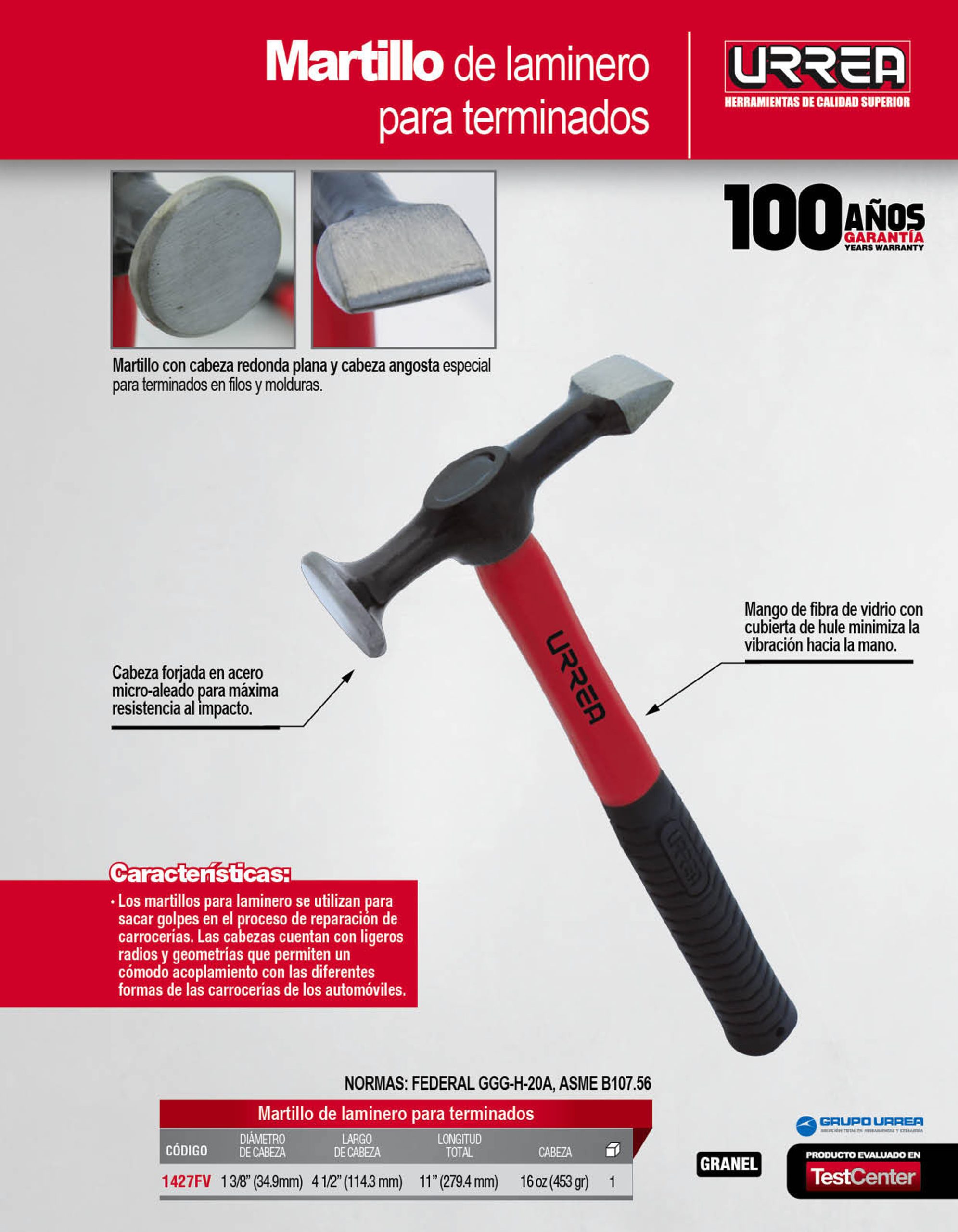 Martillo laminero para terminados cabo fibra de vidrio Urrea