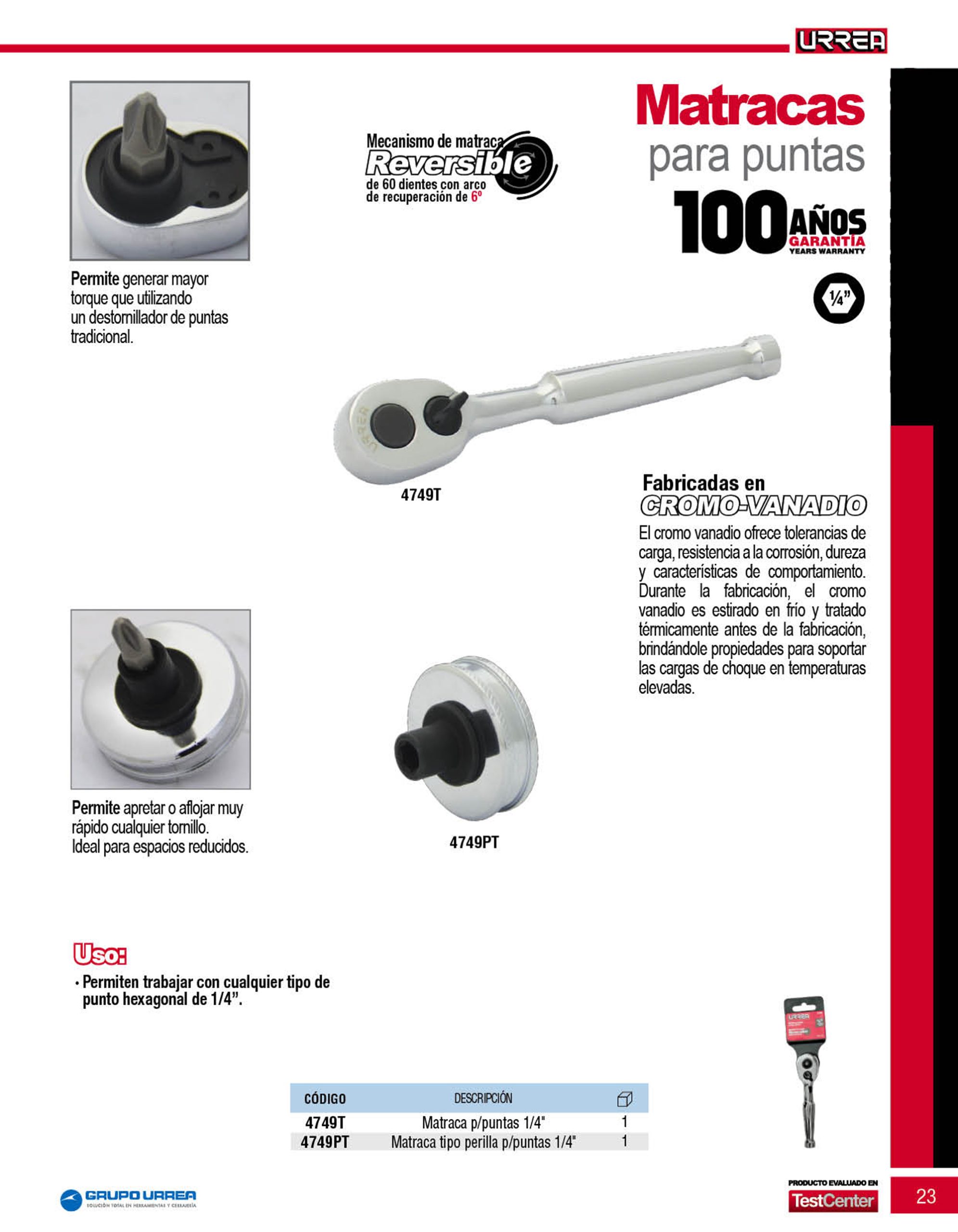 Matraca cabeza tipo pera para punta hexagonal de 1/4″ Urrea