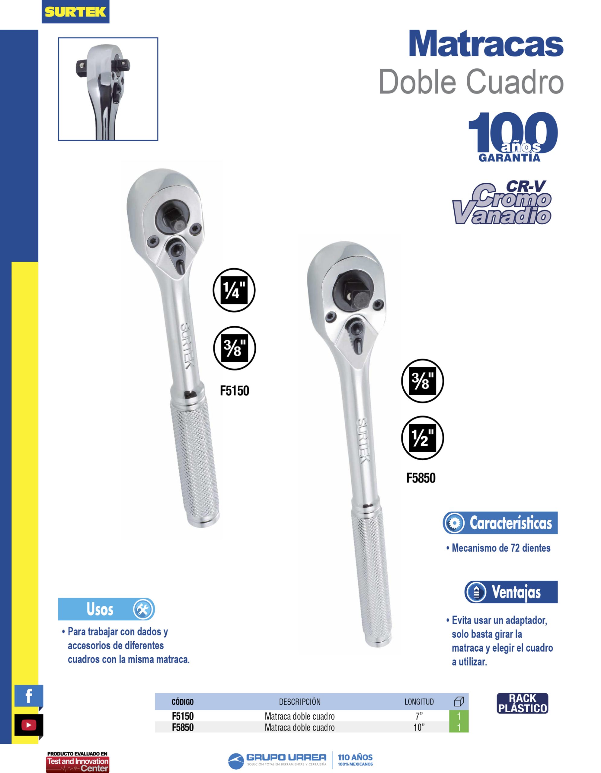 Matraca doble y triple cuadro, cabeza tipo pera, para dados cuadro de 1/4″ y 3/8″ Surtek