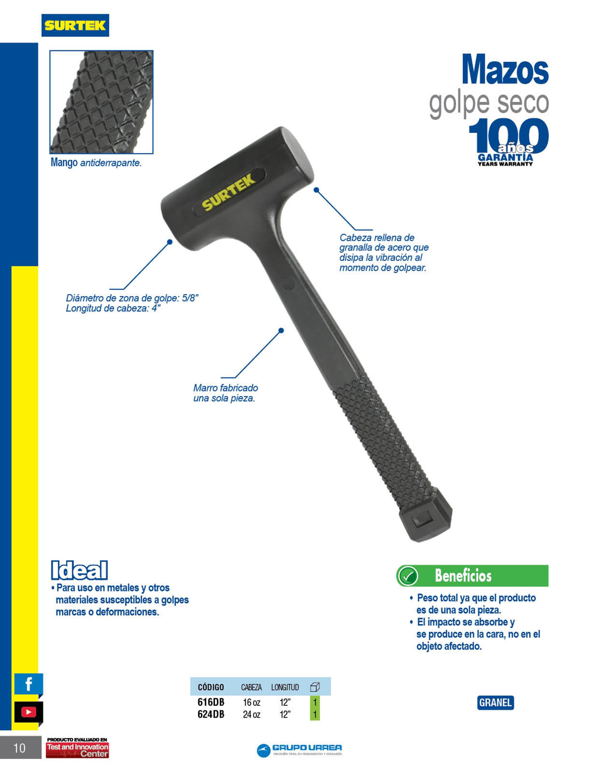 Mazo de golpe seco de una sola pieza con mango antiderrapante de 12″, 16 oz Surtek