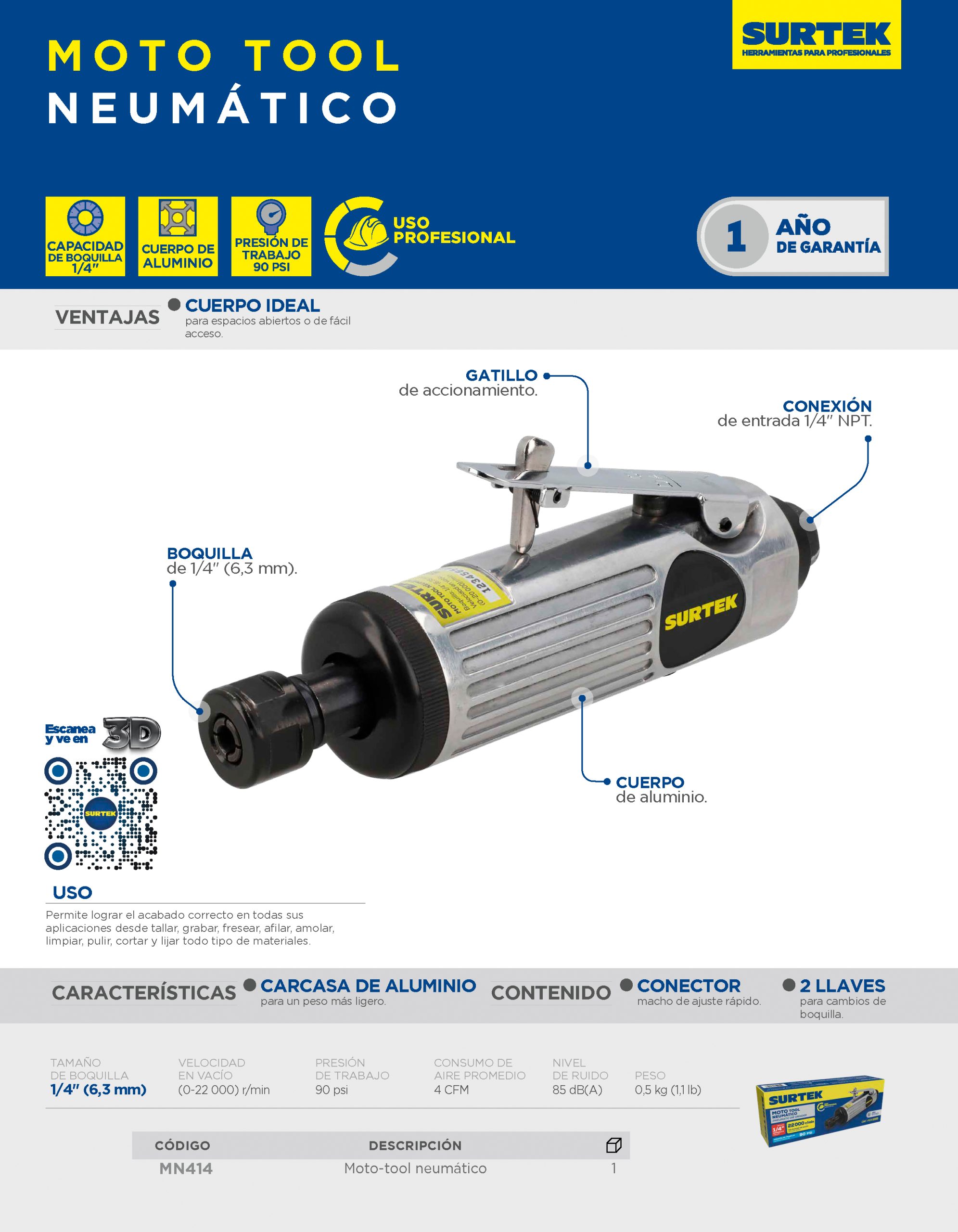 Moto-tool neumático recto 1/4″ 25,000 RPM Surtek
