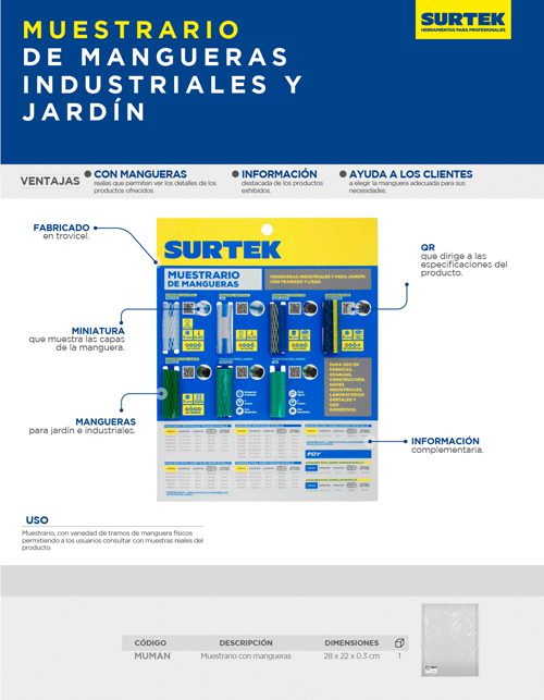 Muestrario de mangueras industriales y para jardín Surtek