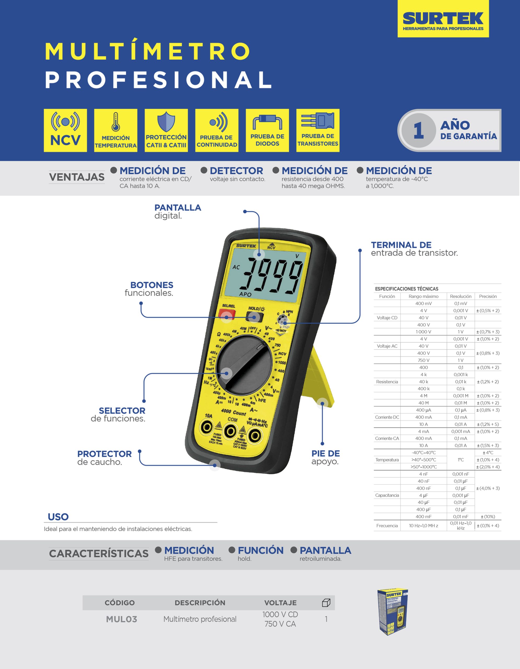 Multímetro profesional 1000V, Instructivo de uso.