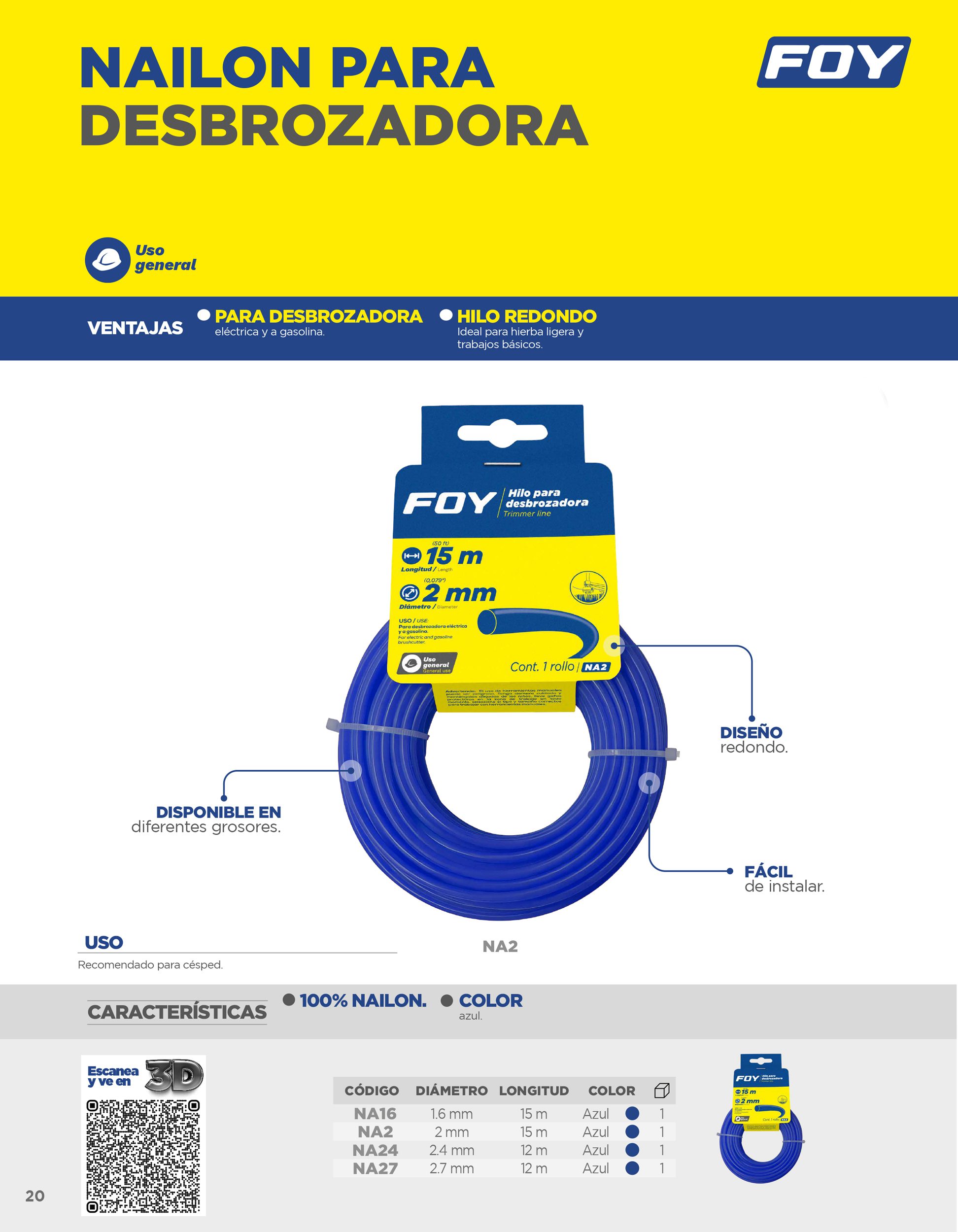 Nailon redondo para desbrozadora en tarjeta, 2.7 mm x 12 m Foy