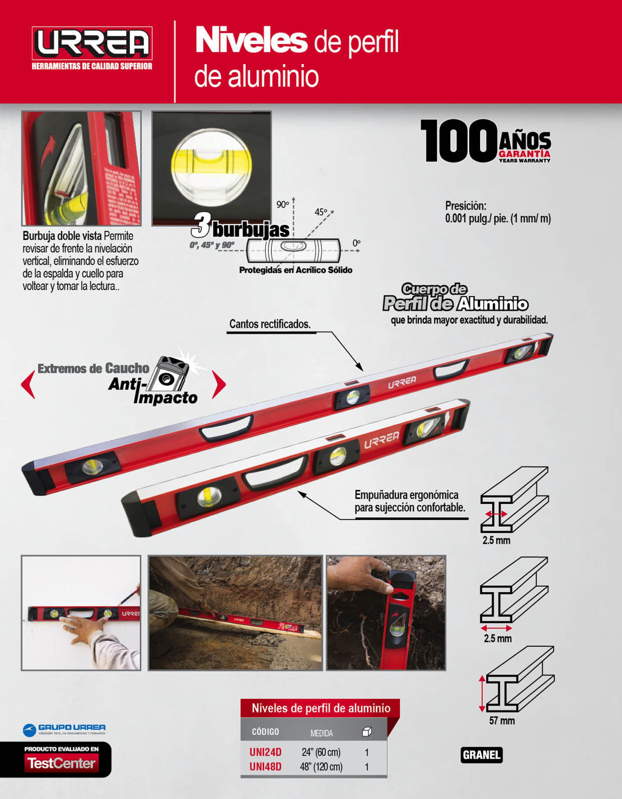 Nivel aluminio dual view 48″ Urrea