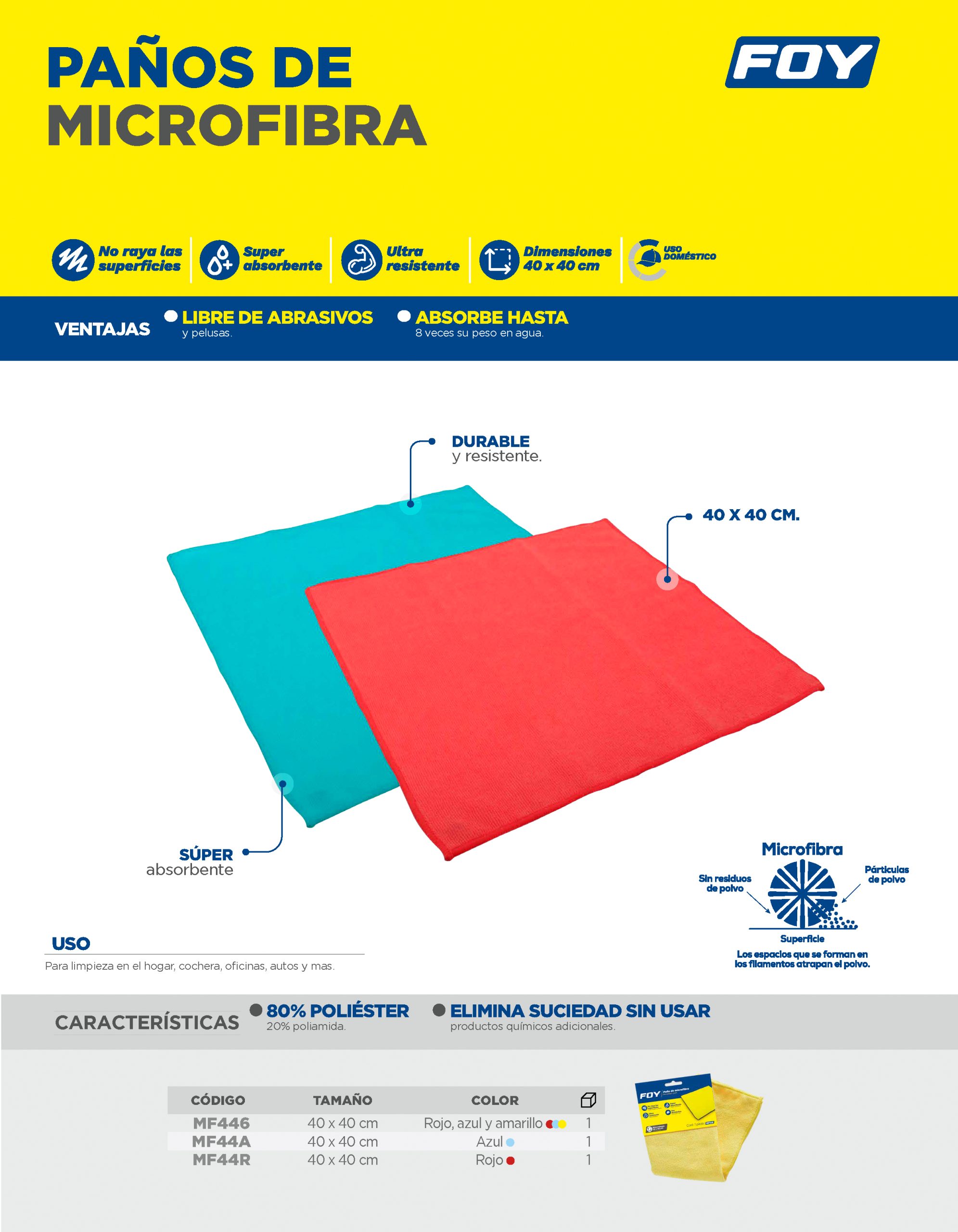 Paño de microfibra de 40 x 40 cm azul Foy