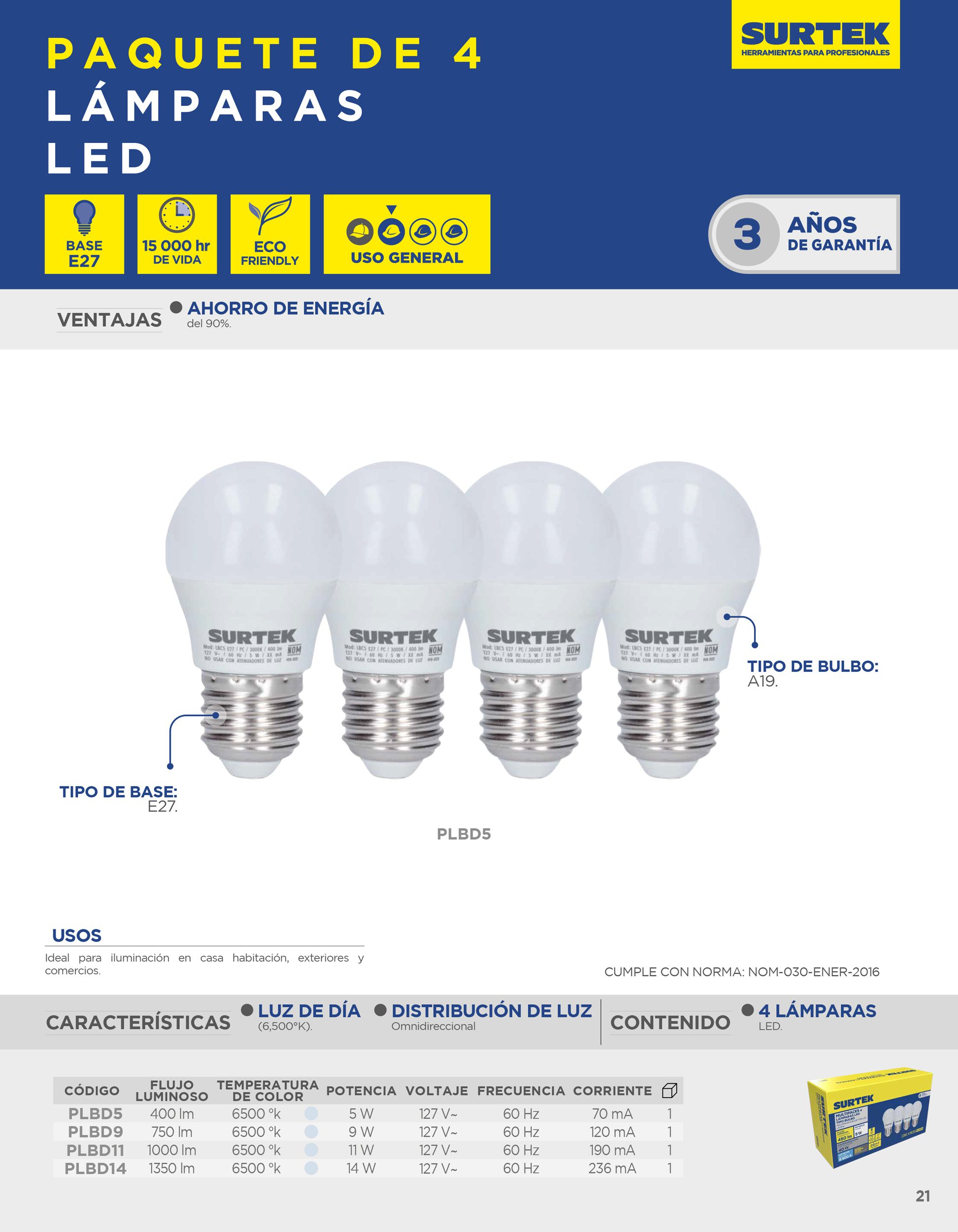 Paquete de 4 lámparas de LED tipo bulbo A19, 11 W luz de día Surtek