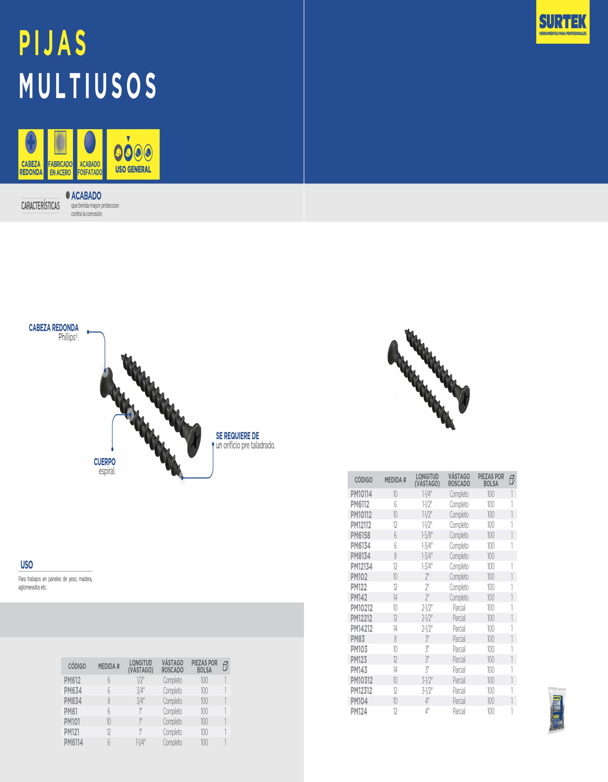 Pija multiusos fosfatizada 1-1/2″ x #8, 100 piezas Surtek