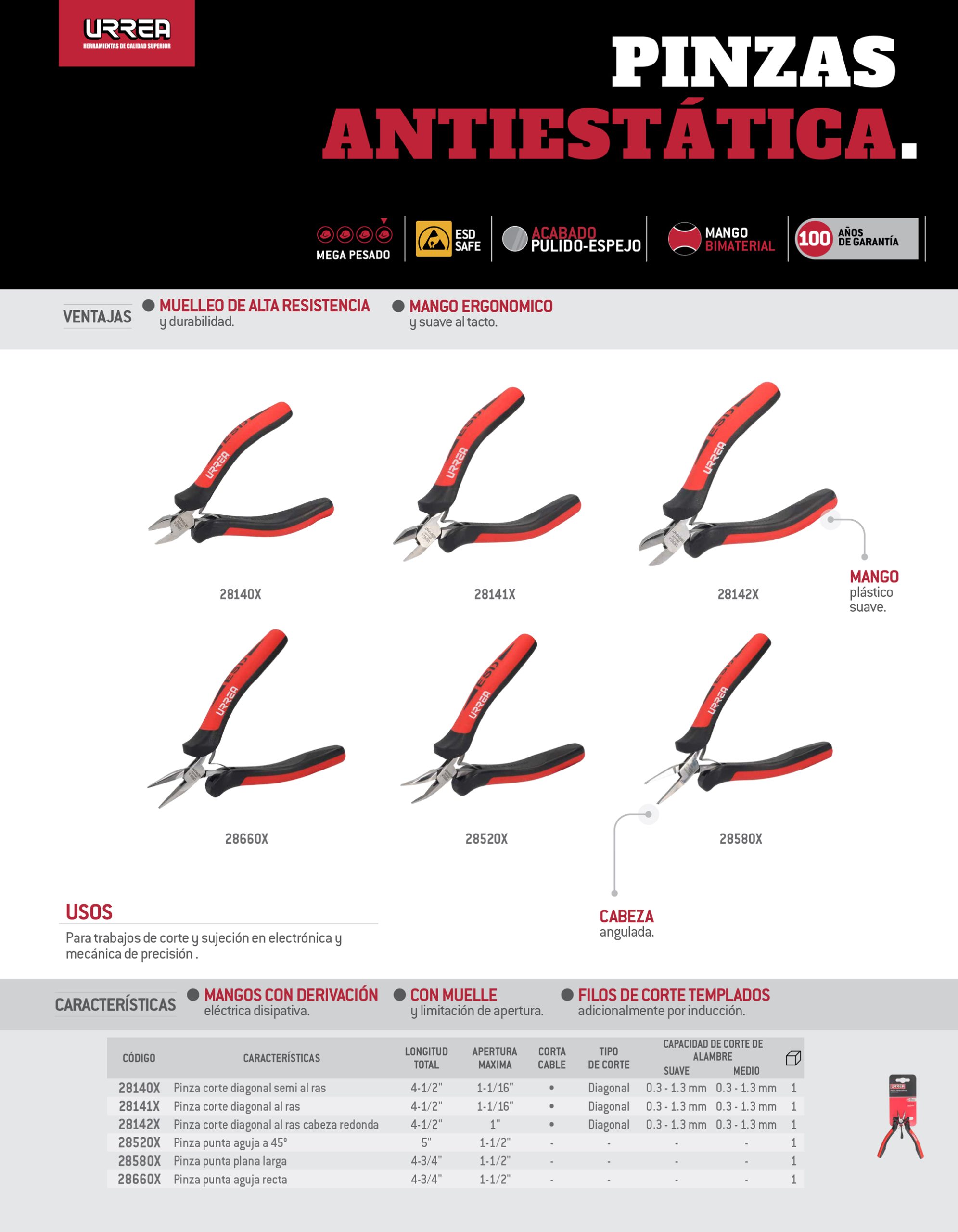 Pinza para electrónica con mango antiestático corte diagonal de 4-1/2″ al ras Urrea