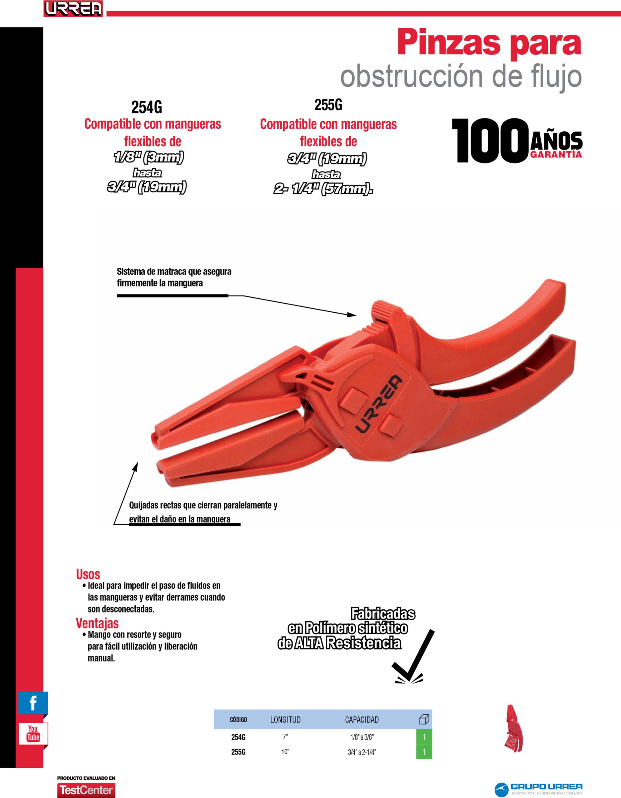 Pinza para obstrucción de flujo mango con resorte 10″ Urrea