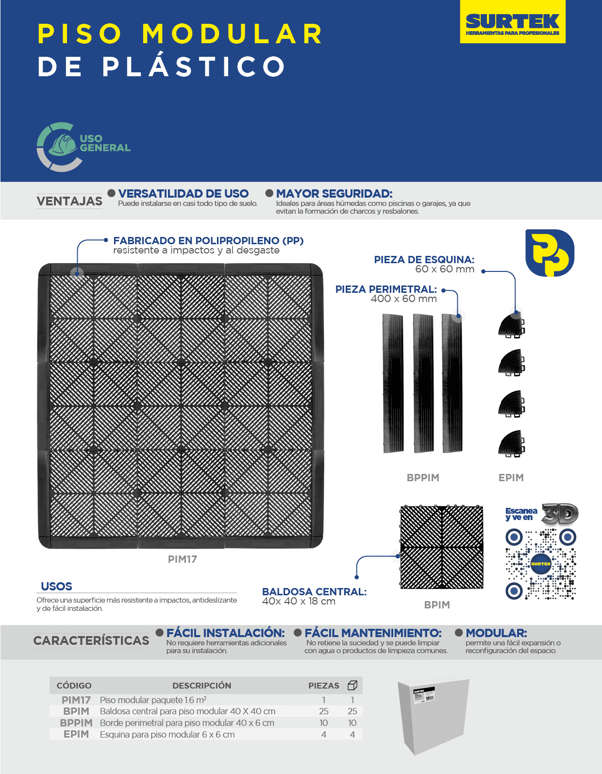 Piso modular paquete 1.6 m2 Surtek
