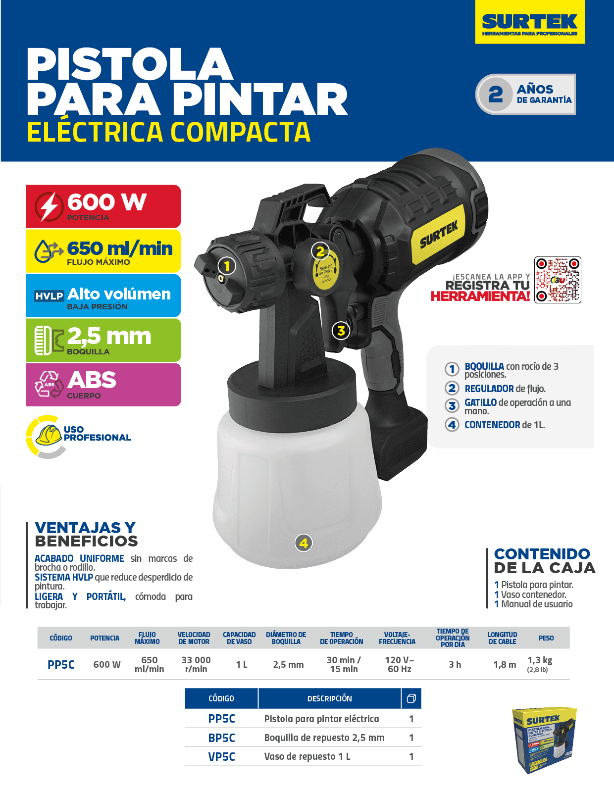 Pistola eléctrica para pintar 600 W 127 V compacta Surtek