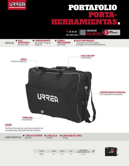 Portafolio portaherramientas de poliéster 15″ x 8″ x 20″ Urrea