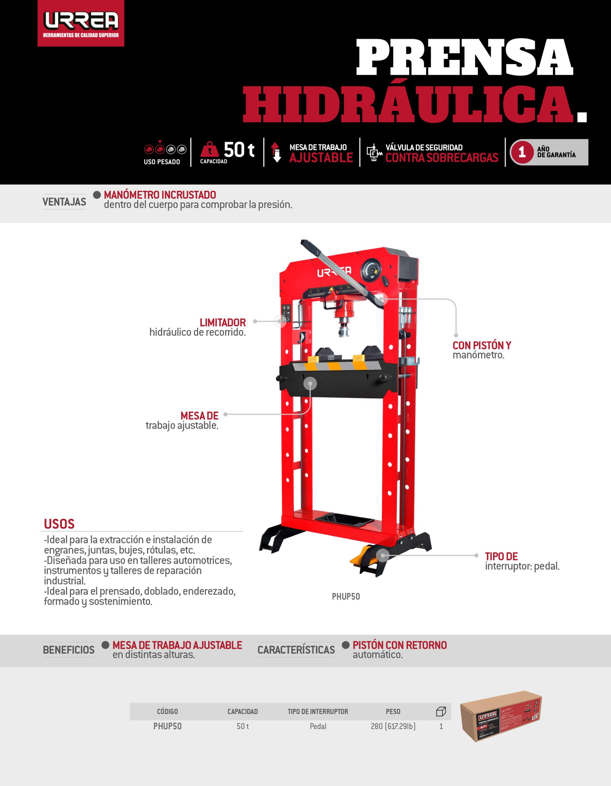 Prensa hidráulica con pedal 50 ton Urrea