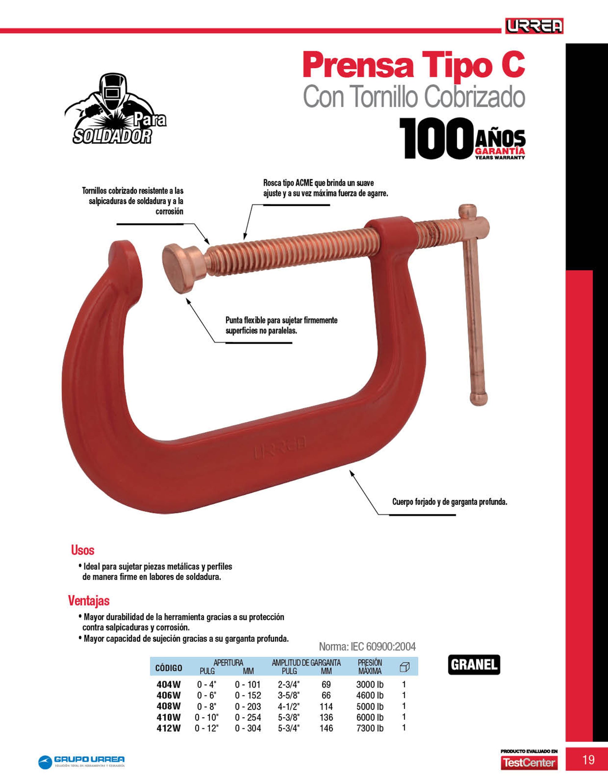 Prensa tipo “C” de 12″ forjada, garganta profunda para soldar Urrea