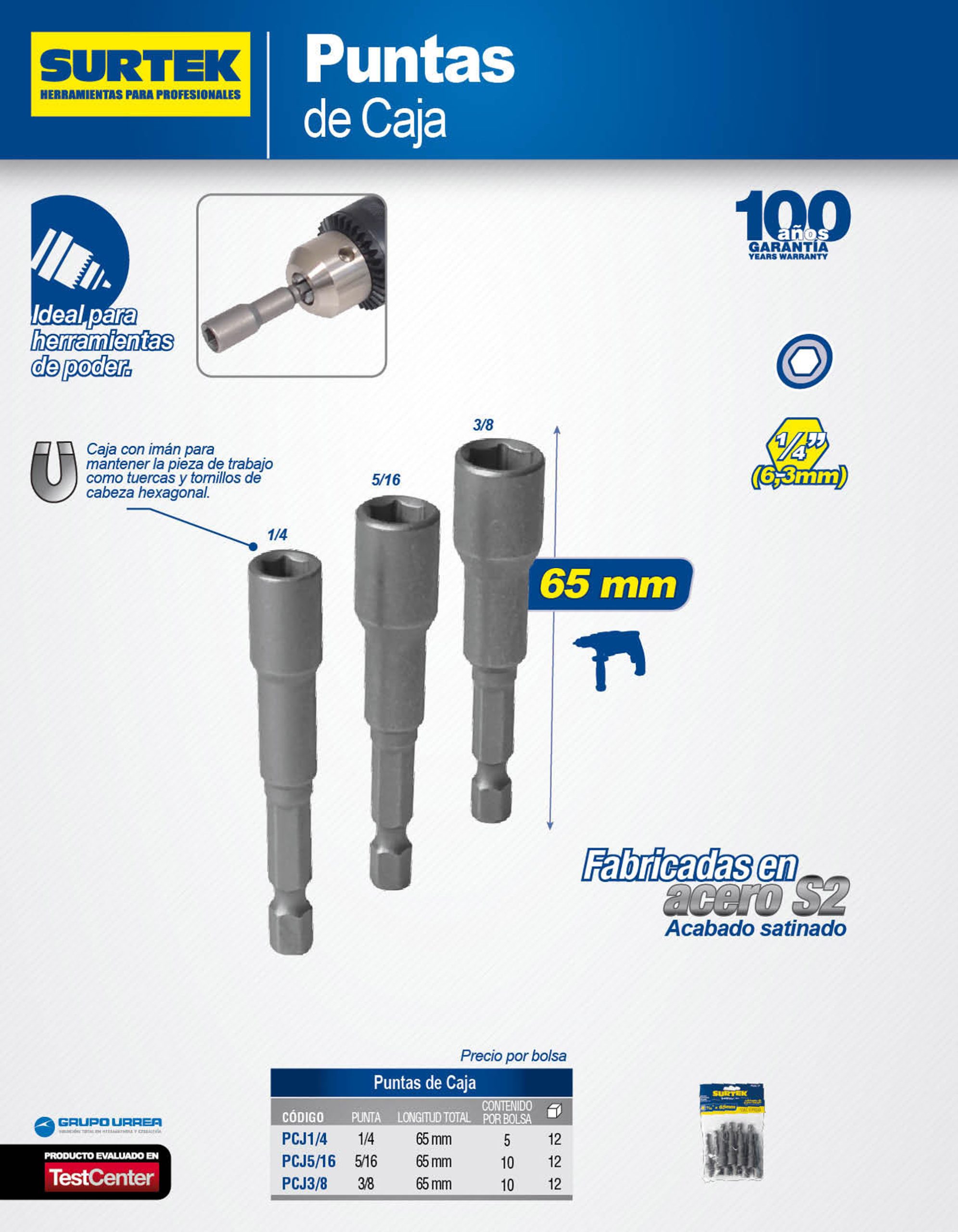 Punta de caja de poder con imán en pulgadas hexágono de 1/4″, 1/4″, 5 piezas Surtek