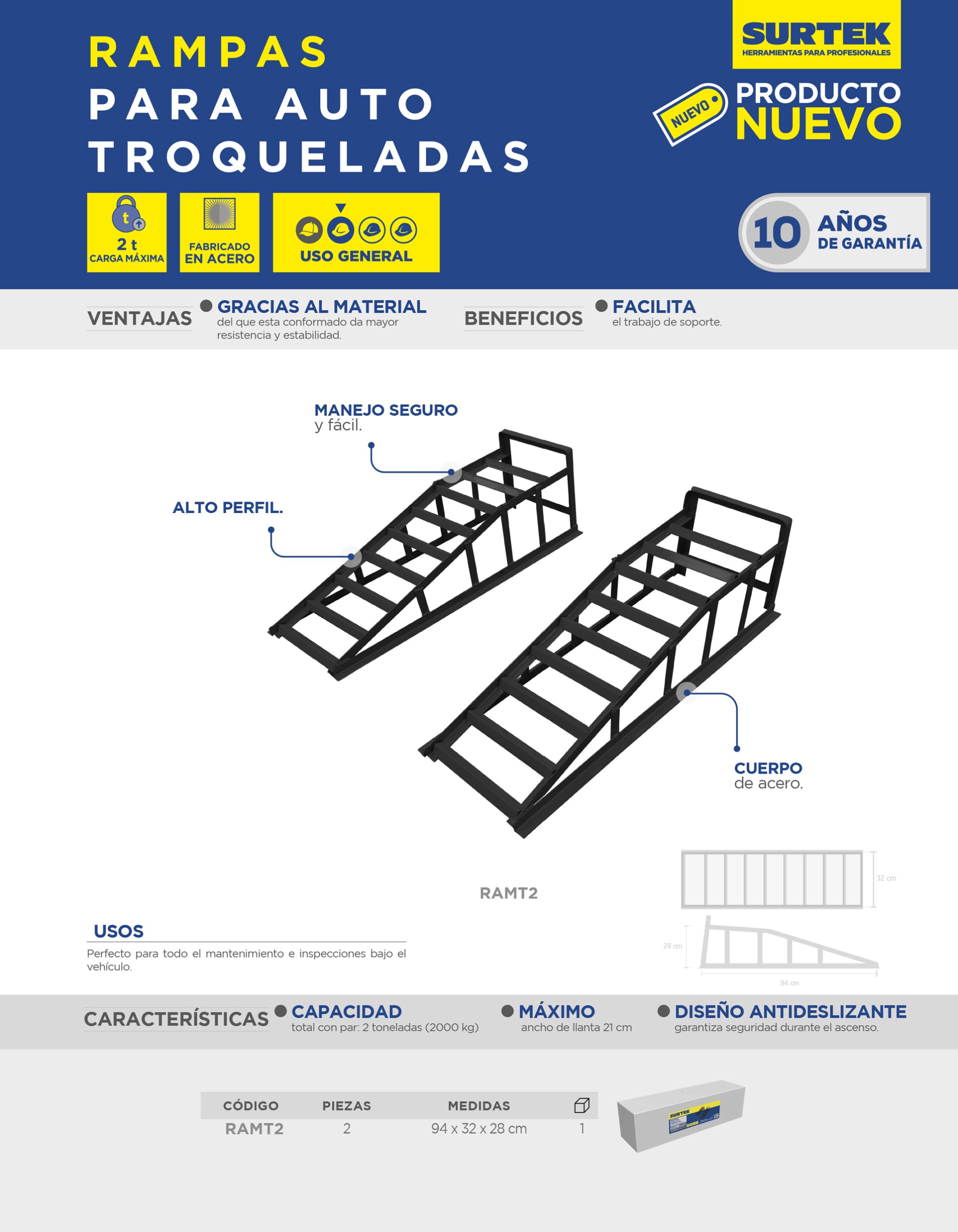 Rampas hidráulicas para automóvil troquel, soporta 2 toneladas, 2 piezas Surtek