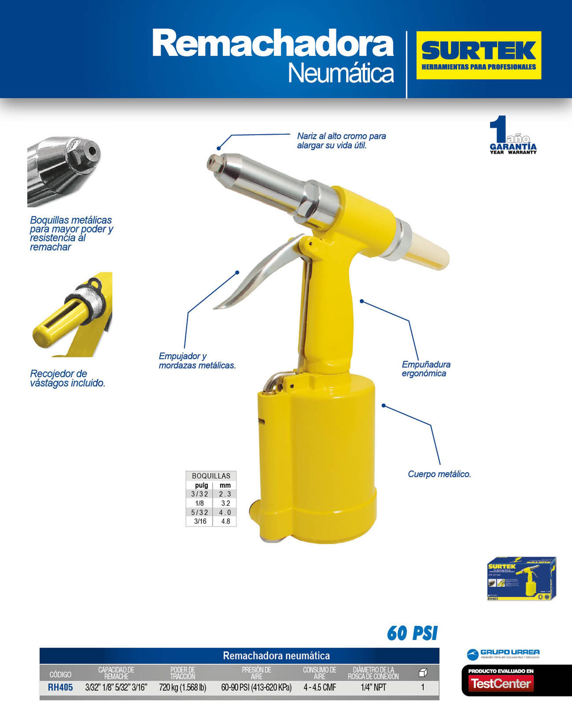 Remachadora neumática para boquillas 3/32″ a 3/16″ Surtek