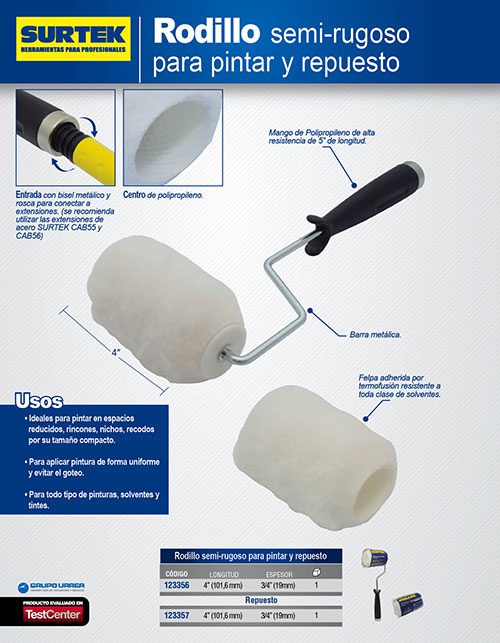 Repuesto de rodillo para pintar de poliéster 4″ x 3/4″ Surtek