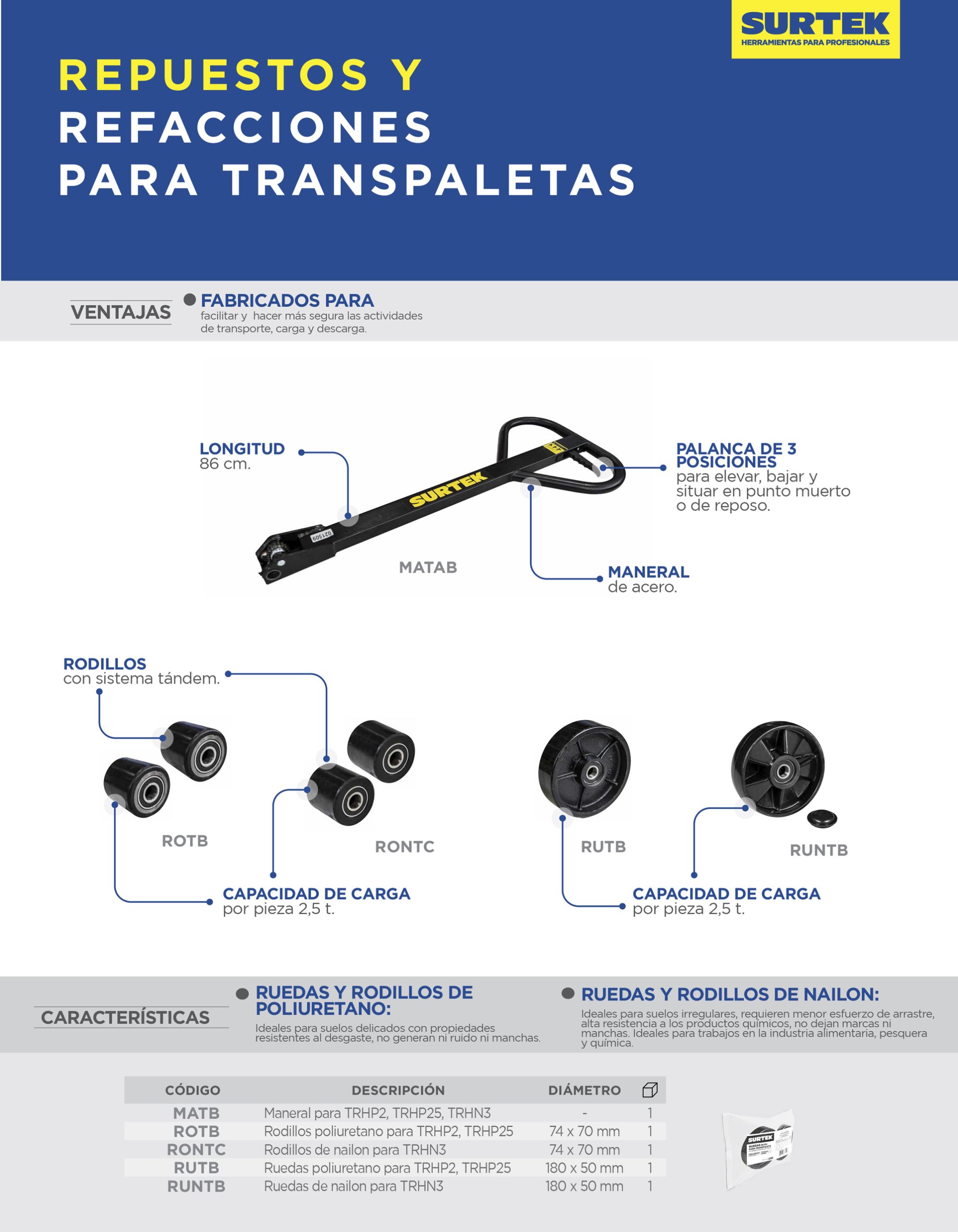 Repuesto de ruedas para transpaleta TRHN3, 2 piezas Surtek
