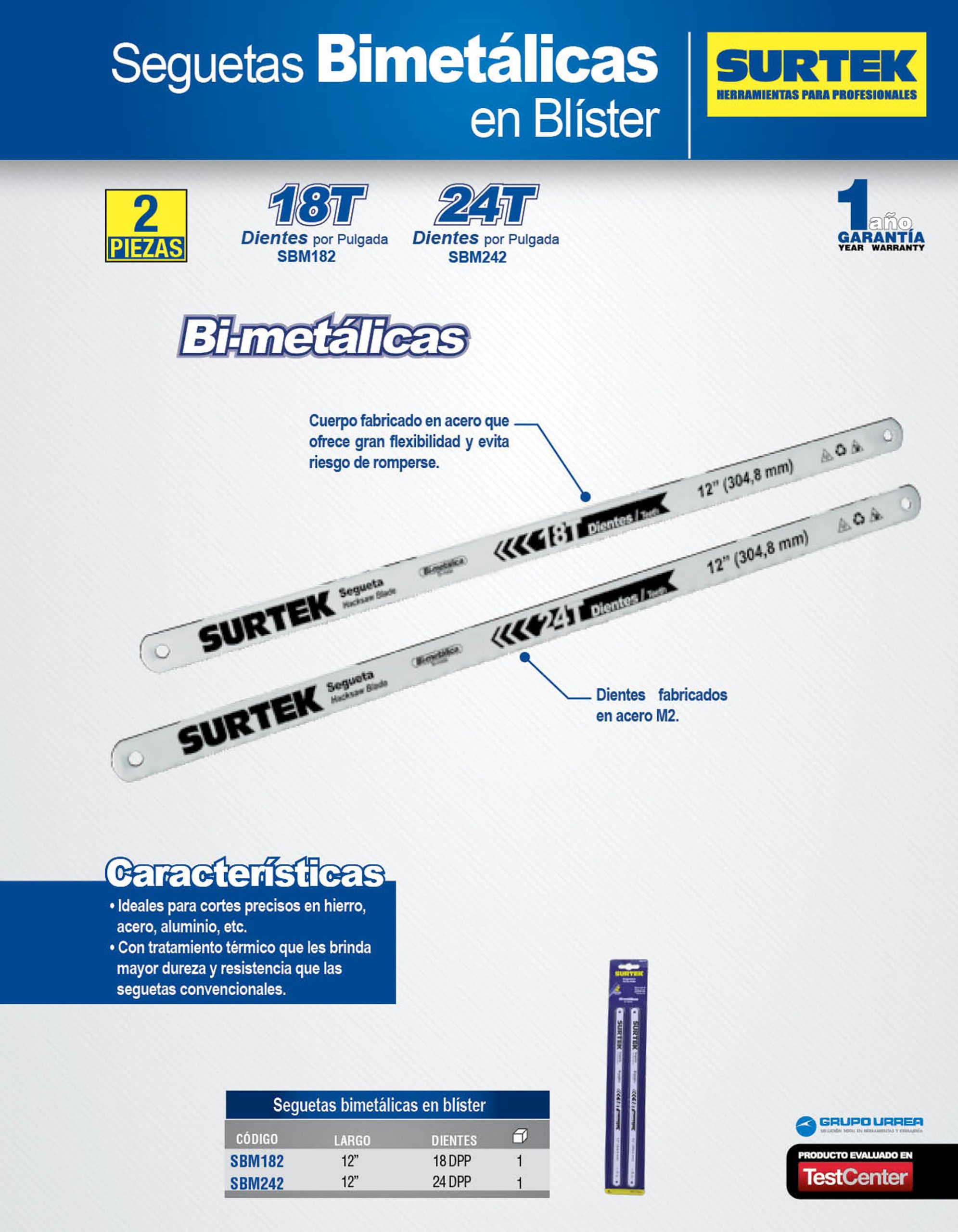 Segueta bimetálica de 12″, 24 DPP, 2 piezas en blíster Surtek