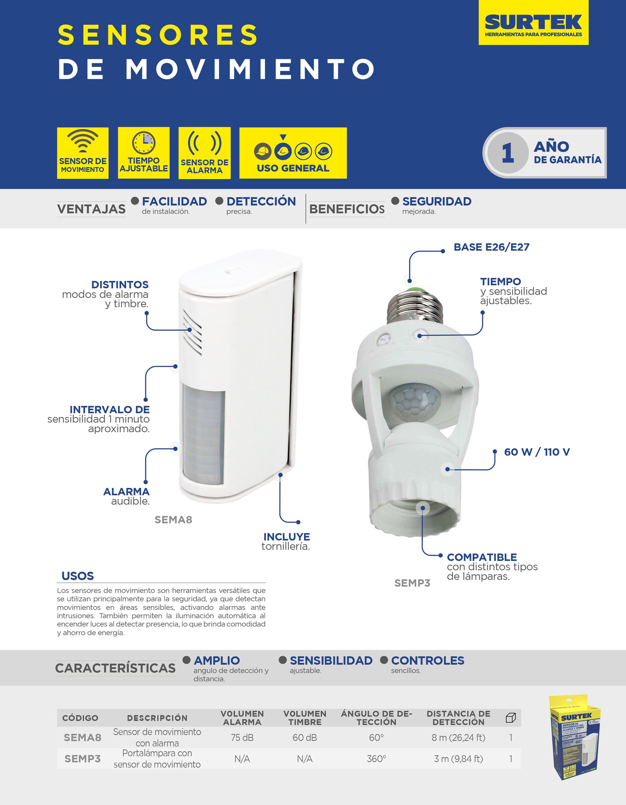 Sensor de movimiento con alarma y timbre, 8m de alcance.