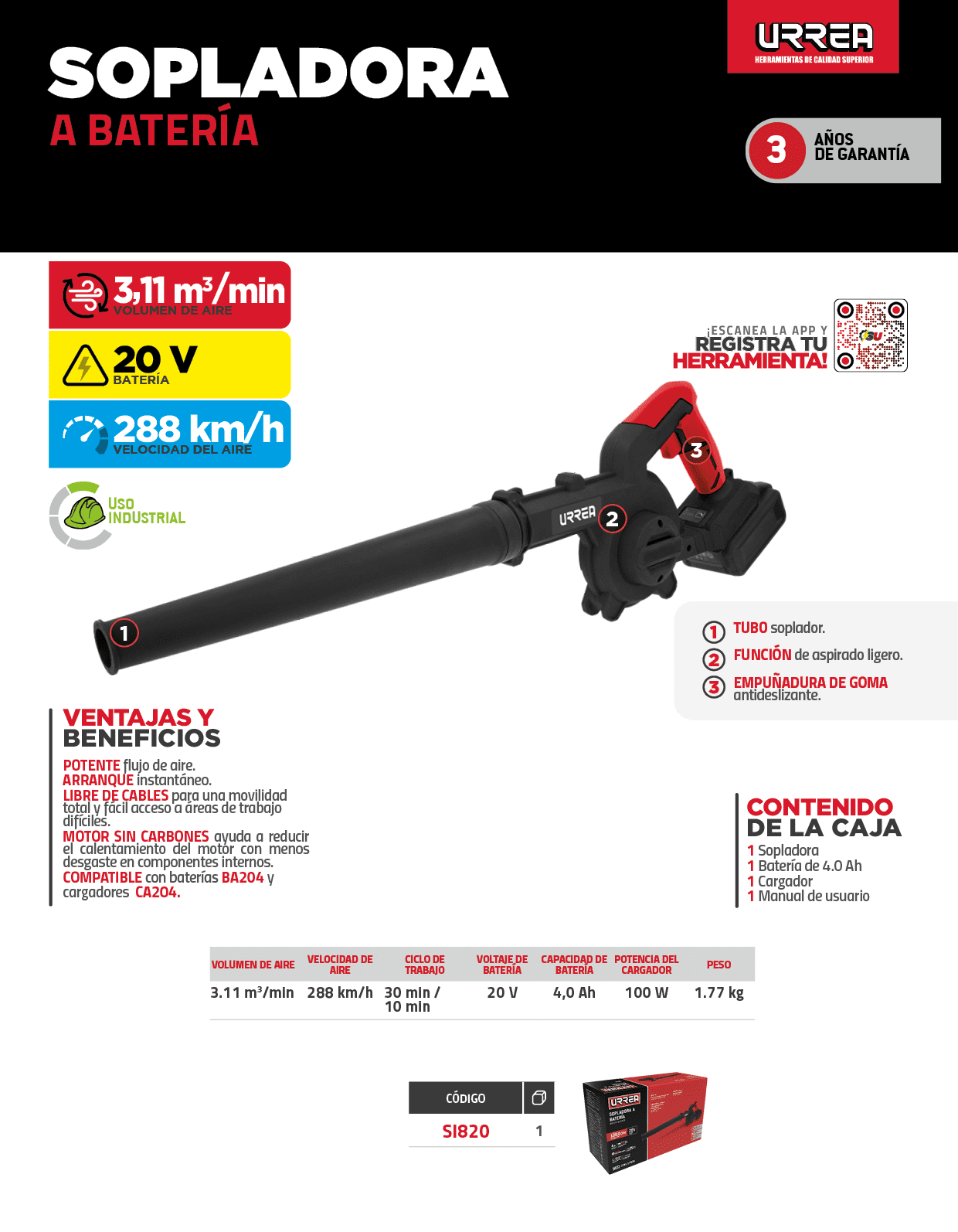 Sopladora a batería Litio-ion 20 V Urrea