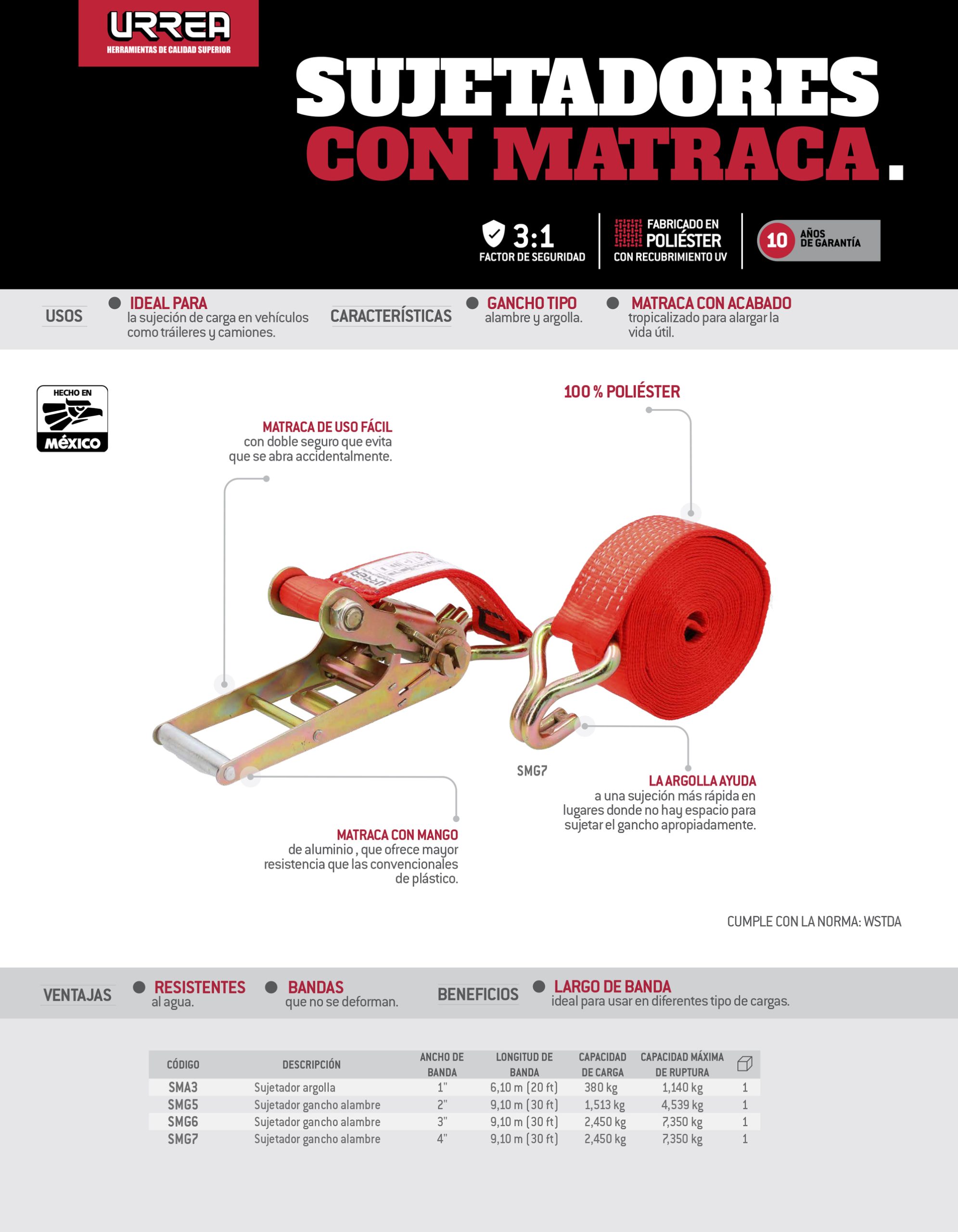 Sujetador con matraca con gancho 2″ x 9 m Urrea
