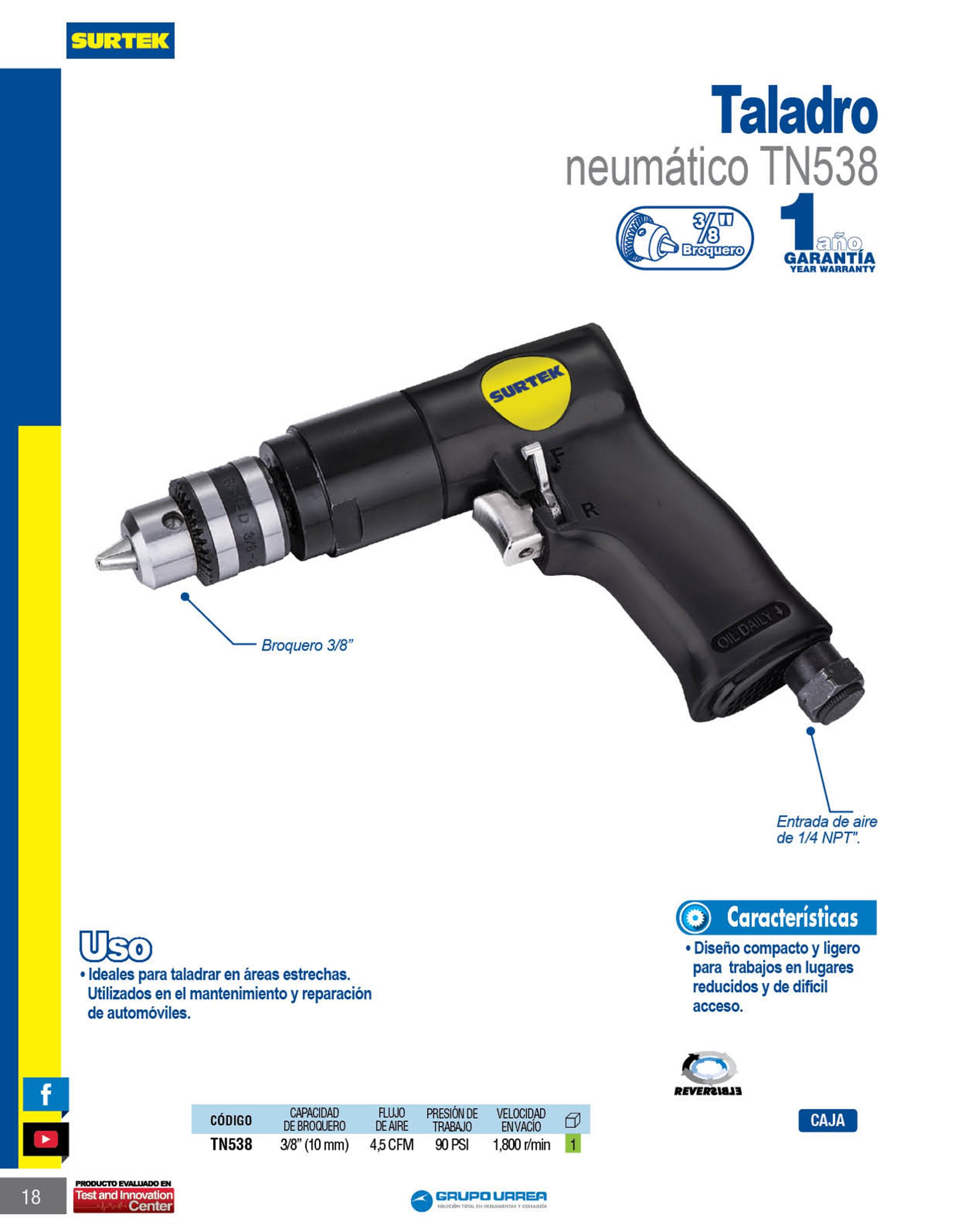 Taladro neumático 1/2″ 1,800 RPM reversible Surtek