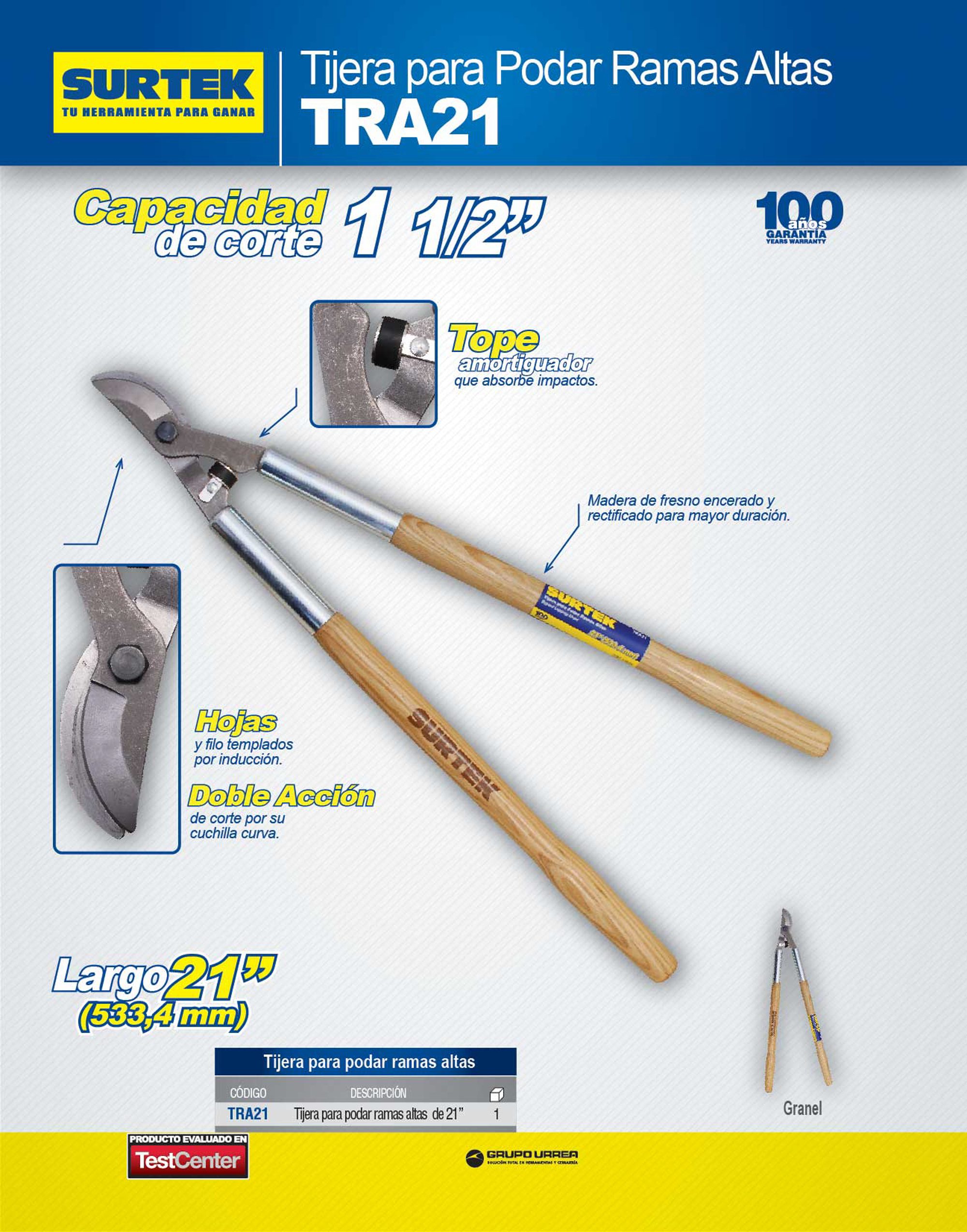 Tijera para poda de ramas altas mango de madera 21″ Surtek