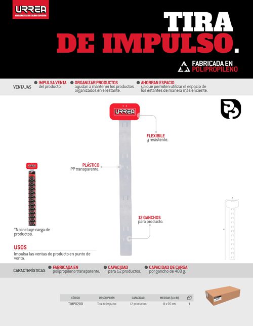 Tira de impulso Urrea de polipropileno 95 x 8 cm Urrea